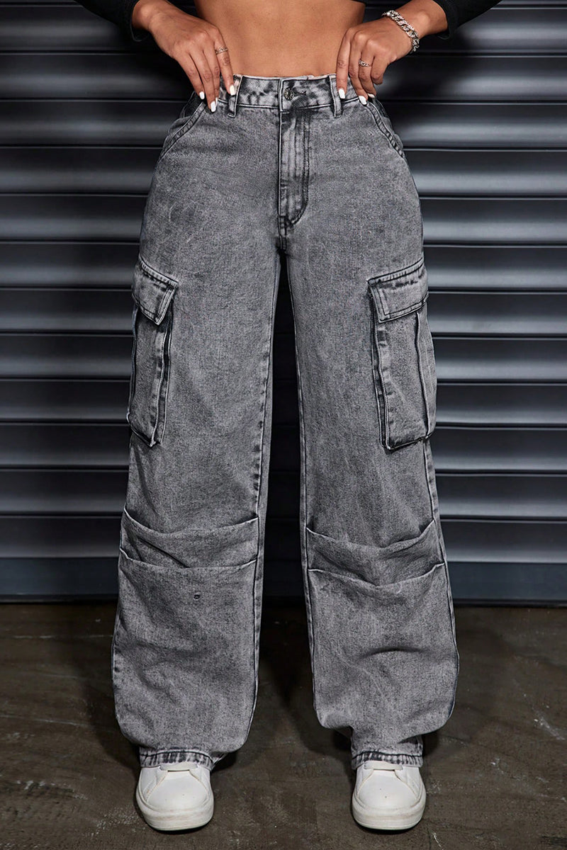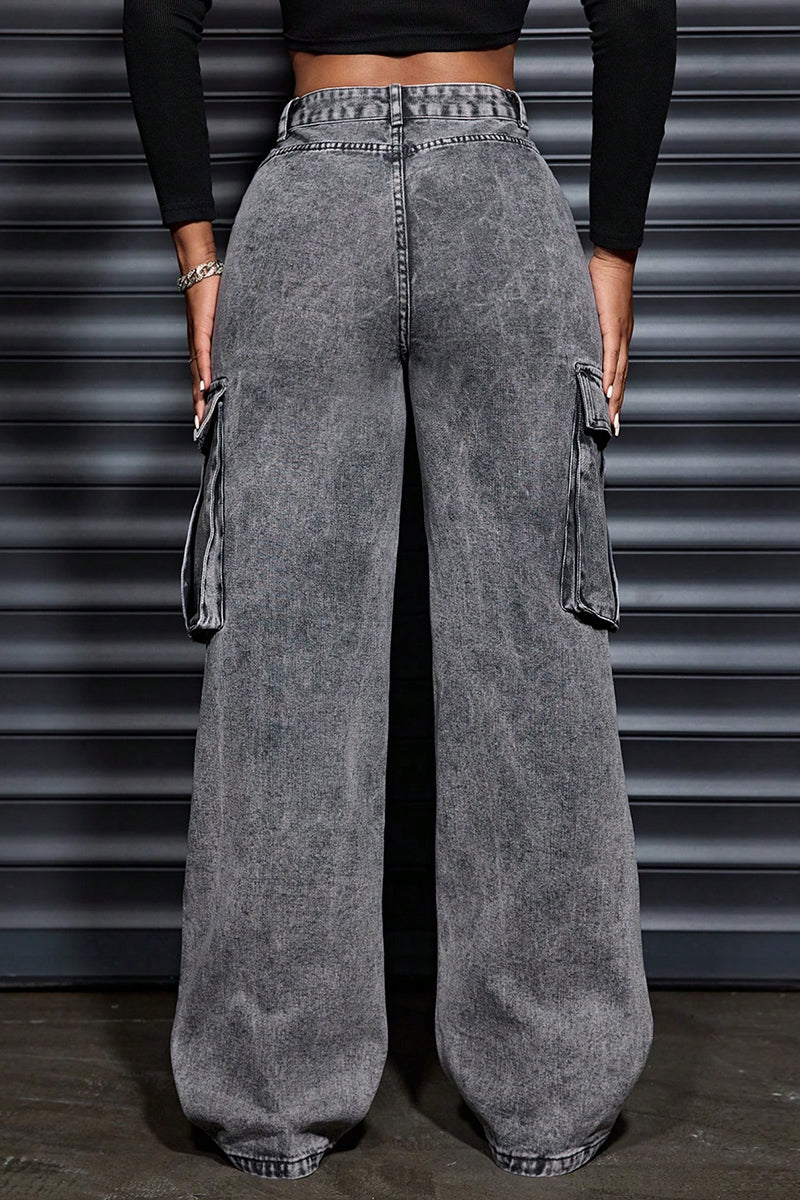 Your new staple jeans feature a practical cargo pocket design and an easy wide-leg fit. Perfect for versatile styling, from casual outings to urban adventures.