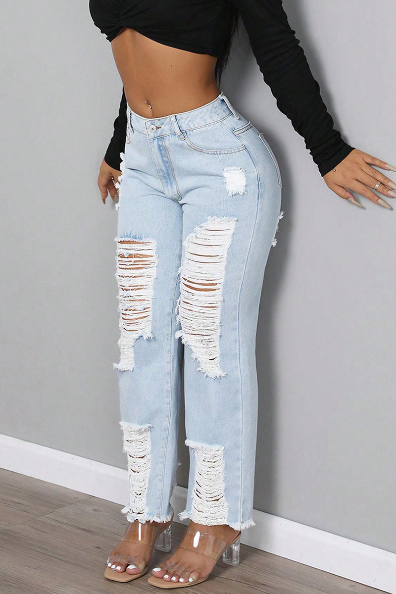 Your new go-to jeans showcase a stylishly distressed design for a bold statement. Perfect for casual outings and effortlessly paired with any top.