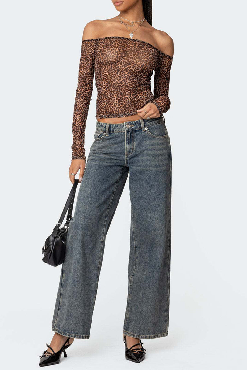 • Leopard Heart Pocket Straight Leg Jeans