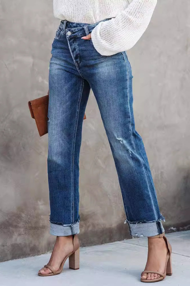 Your new essential jeans feature a timeless straight-leg cut and versatile style. Perfect for any occasion, seamlessly transitioning from casual to chic.