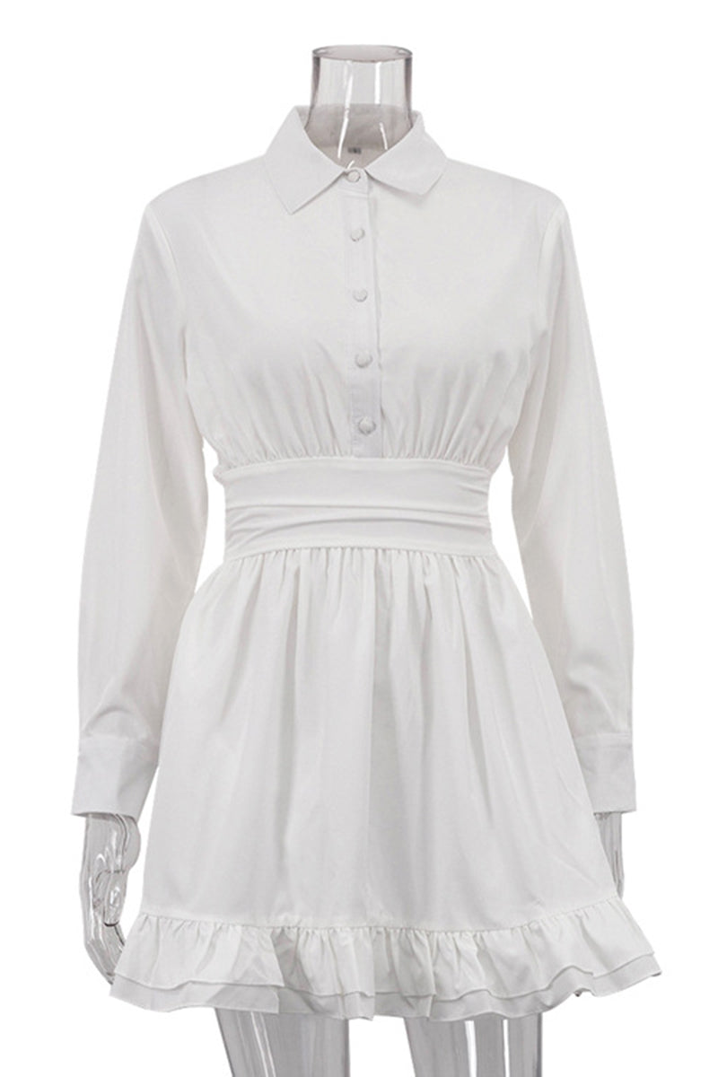 Your new go-to casual dress boasts a sophisticated buttoned neckline and playful ruffled hem. Effortlessly stylish, making it ideal for both relaxed outings and casual gatherings.