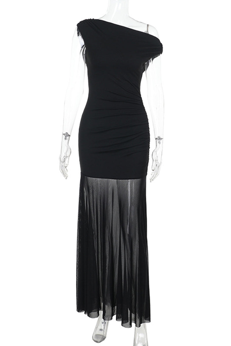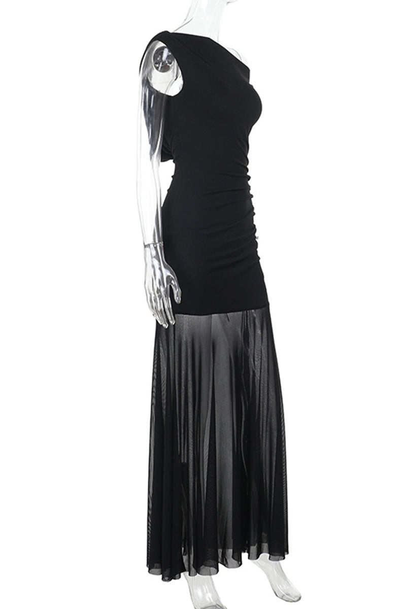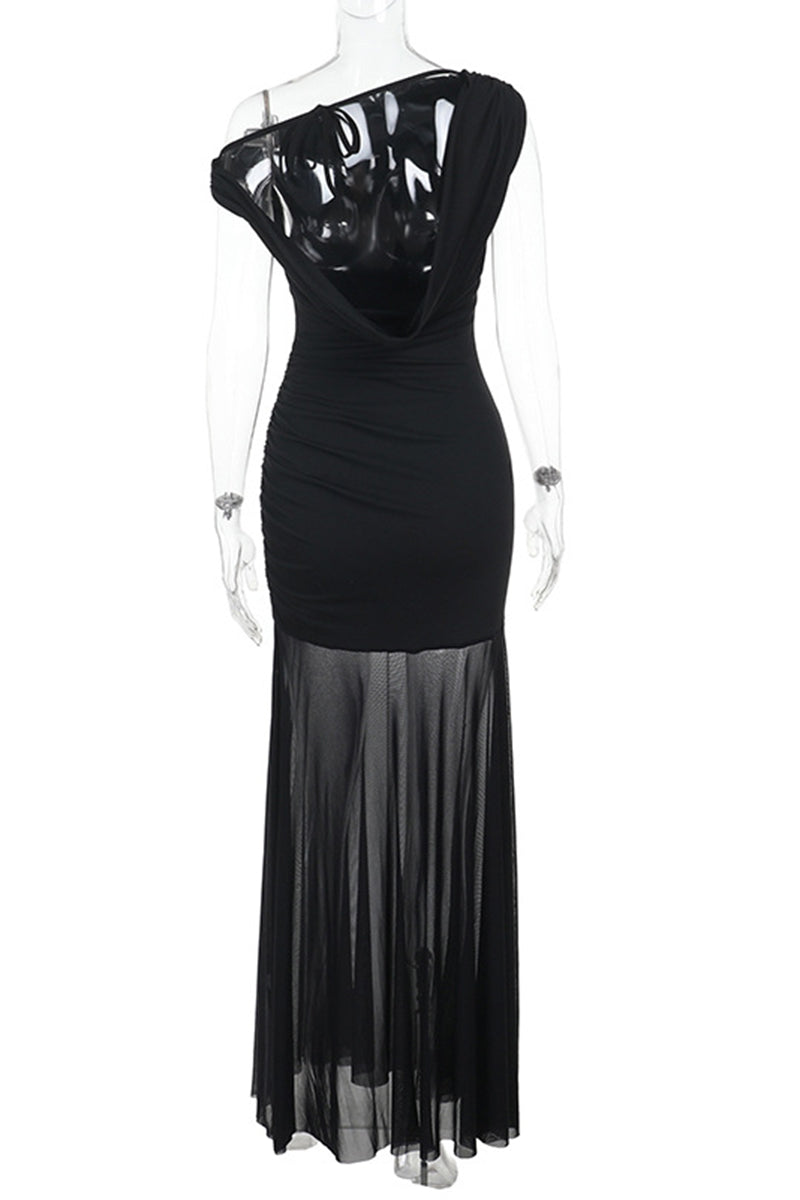 Your new versatile dress boasts a chic draped design with a sophisticated sheer panel. Perfect for day to night occasions, adding effortless style to your wardrobe.