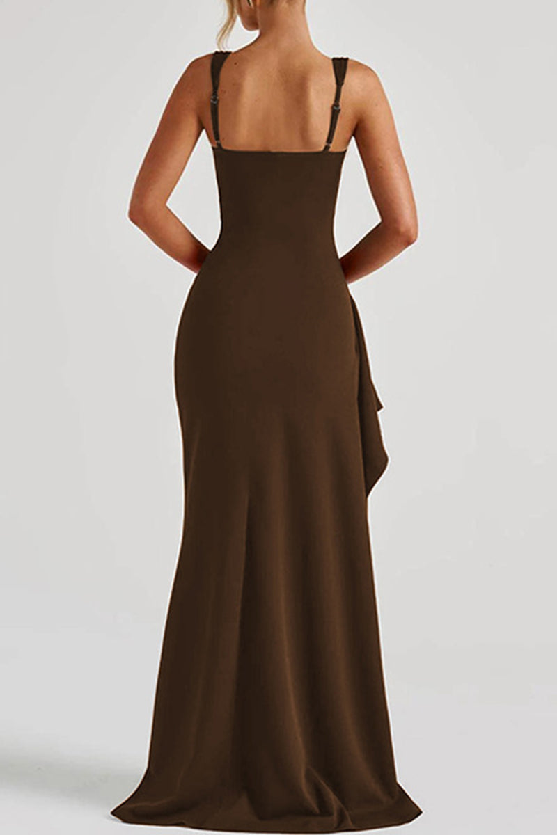 Your new casual dress features a sleek design with a striking side slit. Effortlessly pairs with your favorite accessories for any occasion.