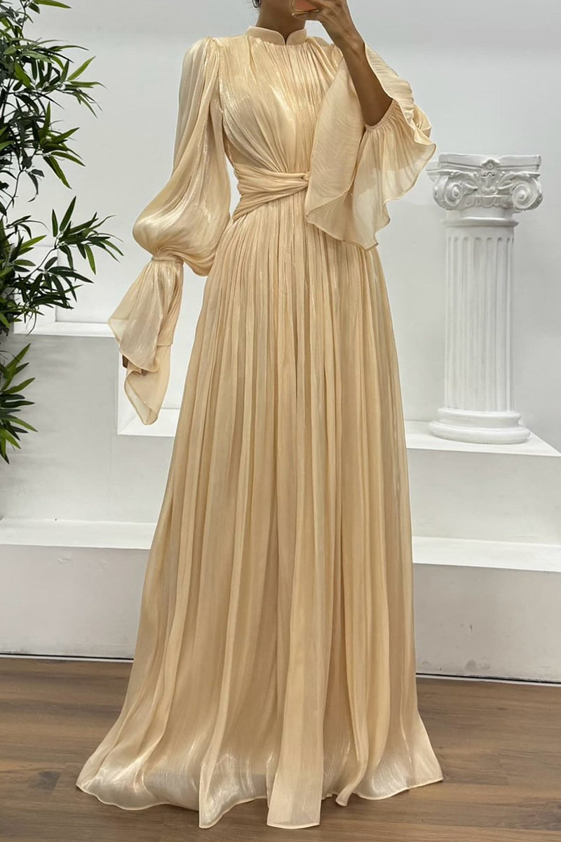 Your new casual favorite features graceful pleats and flowing long sleeves. Perfect for elevating any event with its timeless charm.
