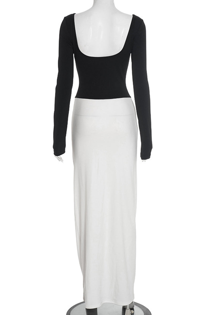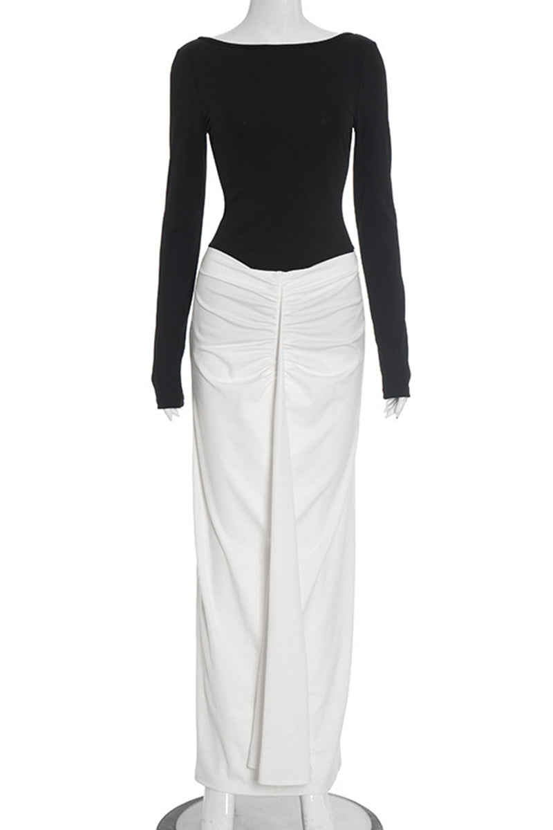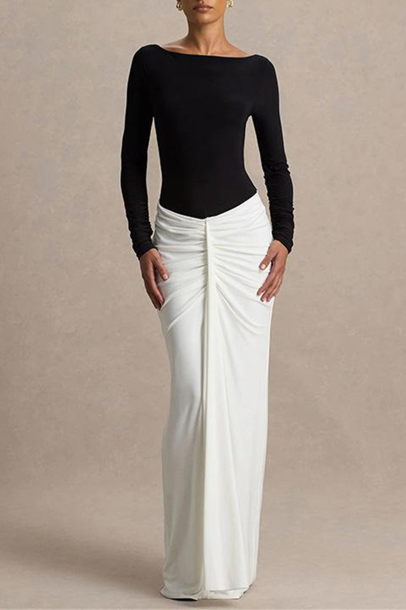 Elegant Ruched Two-Tone Maxi Dress