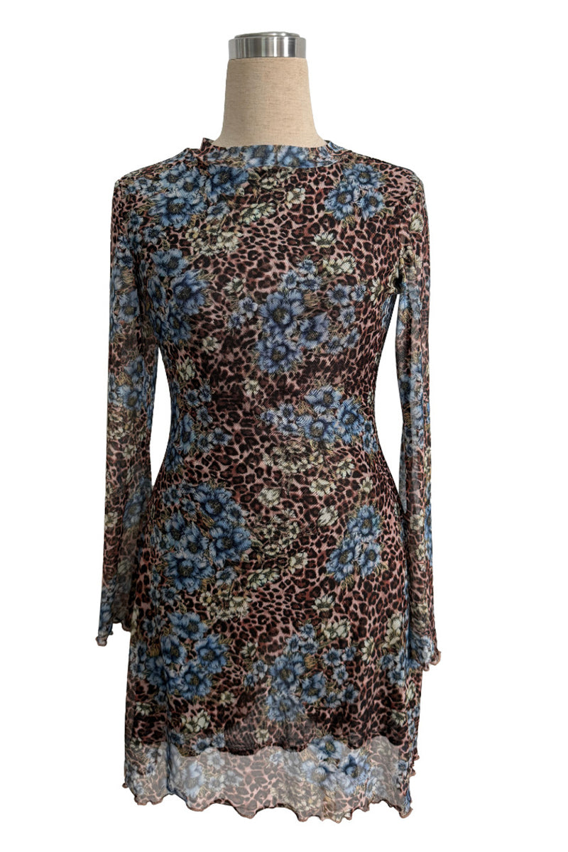 Floral and Leopard Print Casual Dress