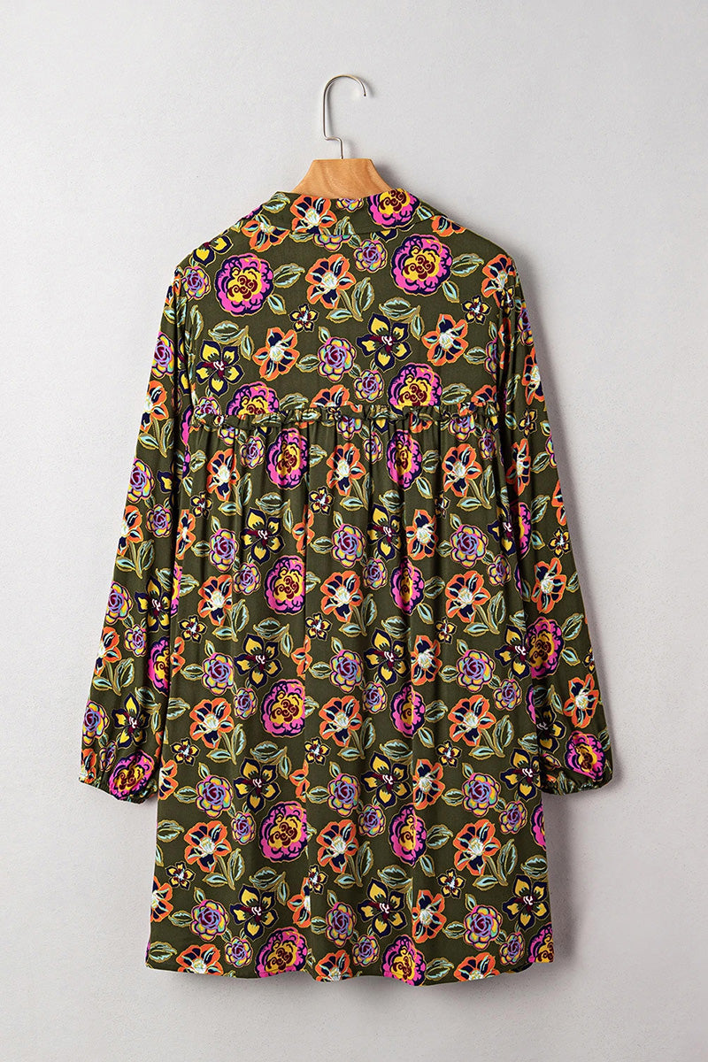 Your new go-to mini dress features a split neck and bubble sleeves for a stylish fit. Effortlessly transitions from day to night, making it perfect for multiple occasions.