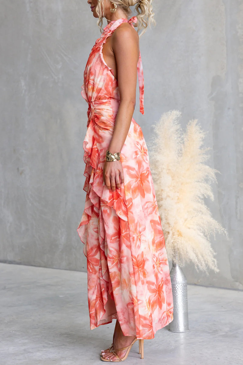 Your new favorite dress showcases a flowing silhouette with a chic halter neckline. Perfect for casual outings, it effortlessly combines style and comfort.