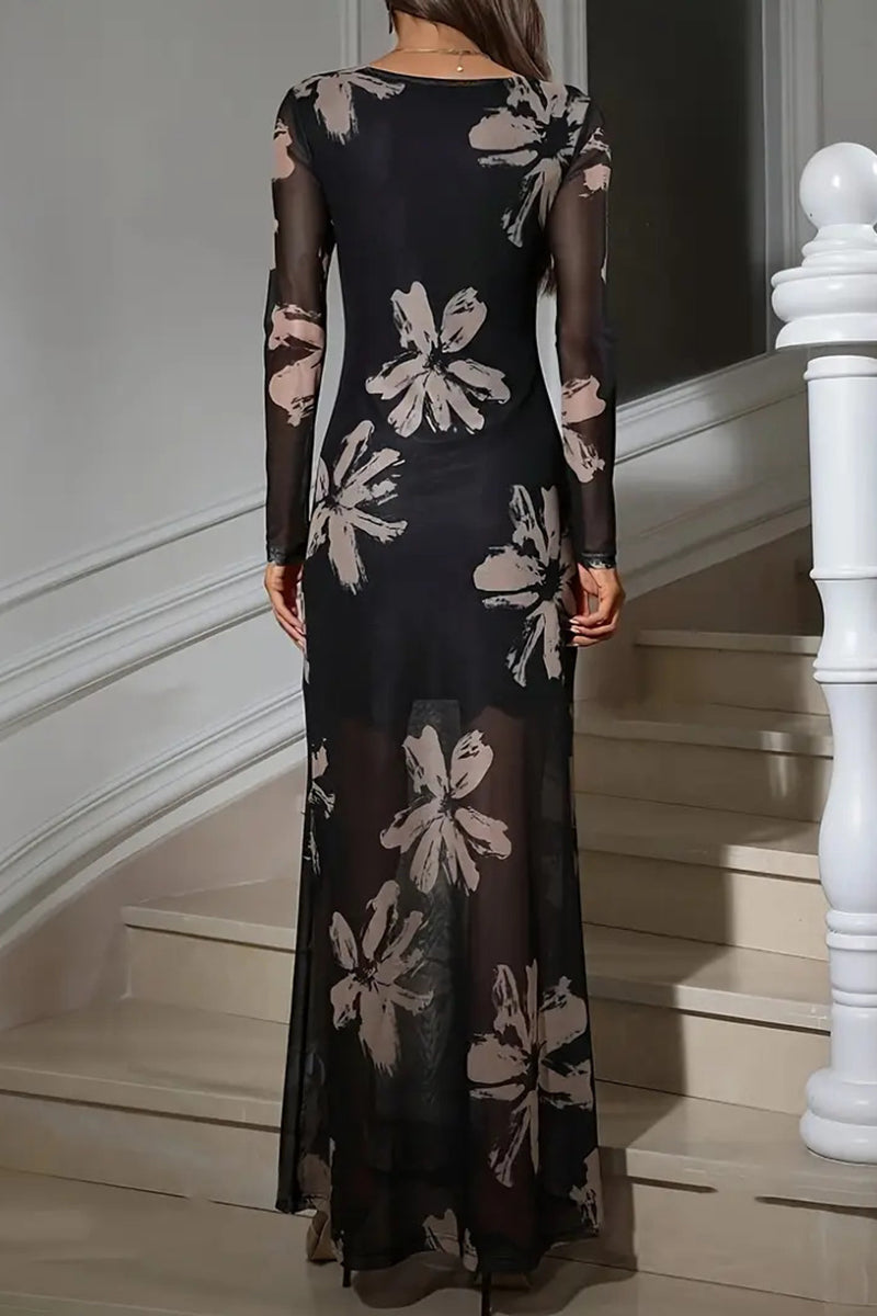 Floral Printed Mesh Maxi Dress