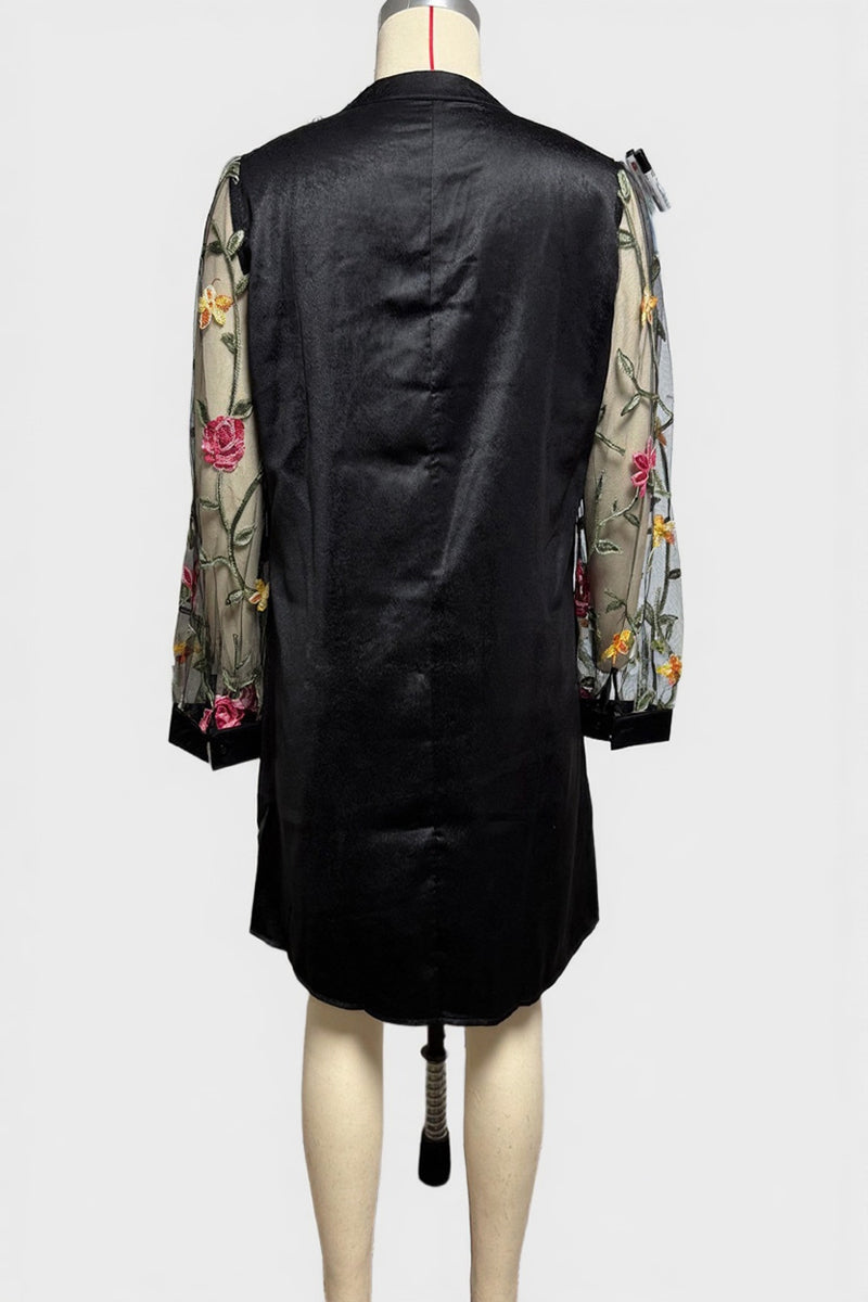 Your new favorite dress features elegant floral sheer sleeves and a chic V-neckline. Perfect for casual outings, it effortlessly elevates your style for any occasion.