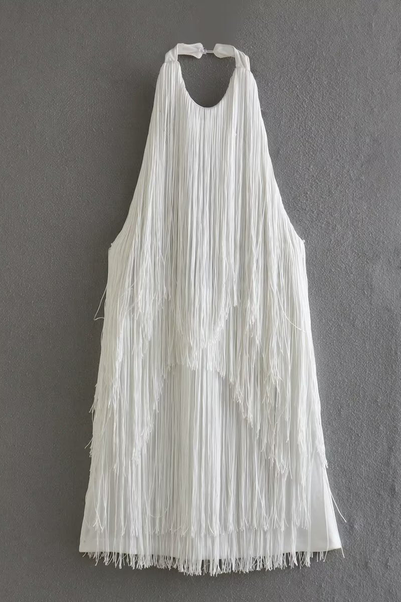 Your new statement dress features a halter neckline and flowing pleated details. Perfect for night-out occasions, ensuring an elegant and chic look.