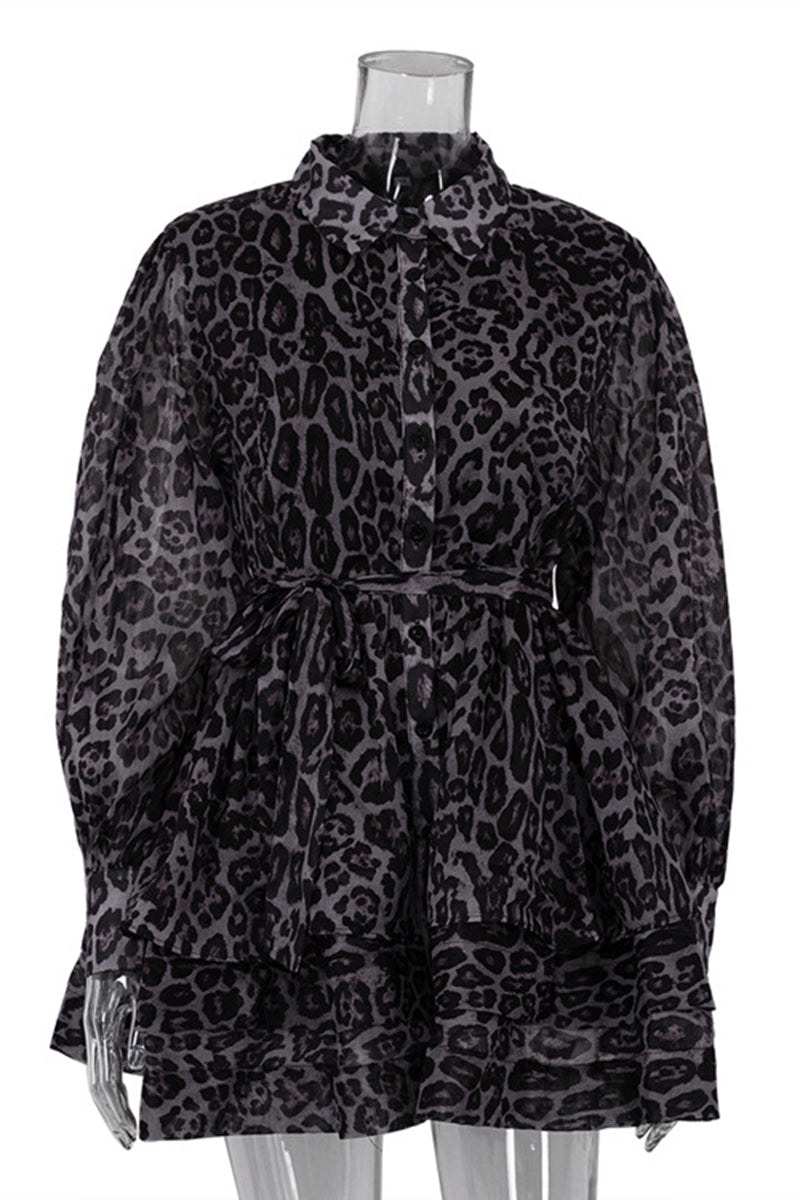 • Leopard Print Button-Front Casual Dress