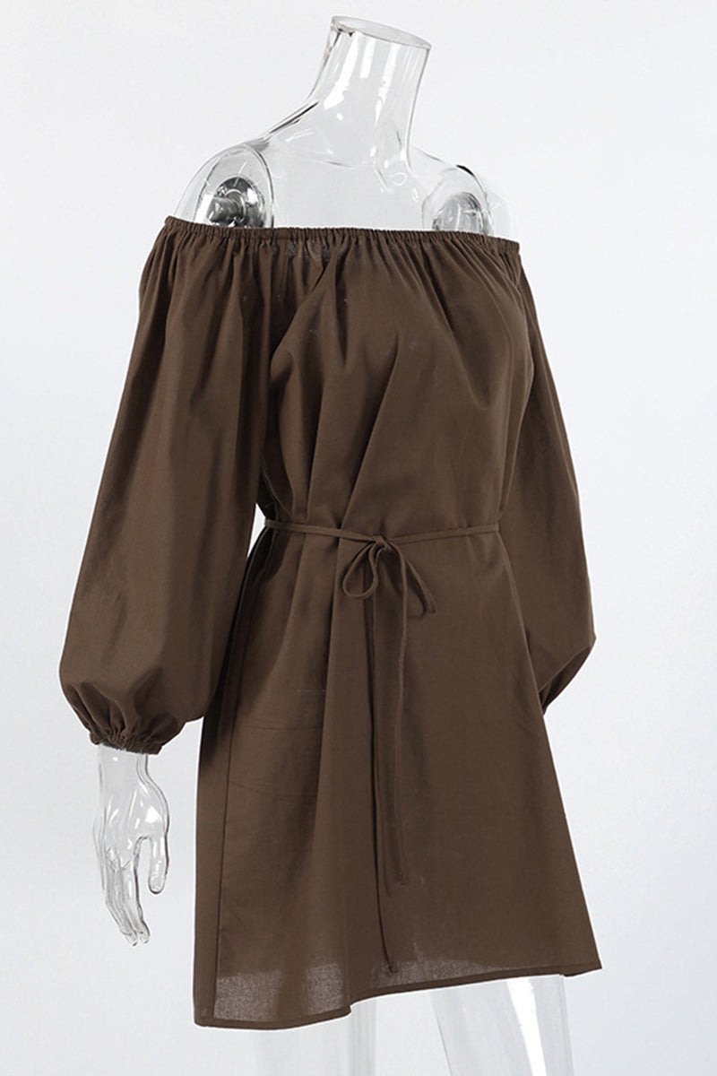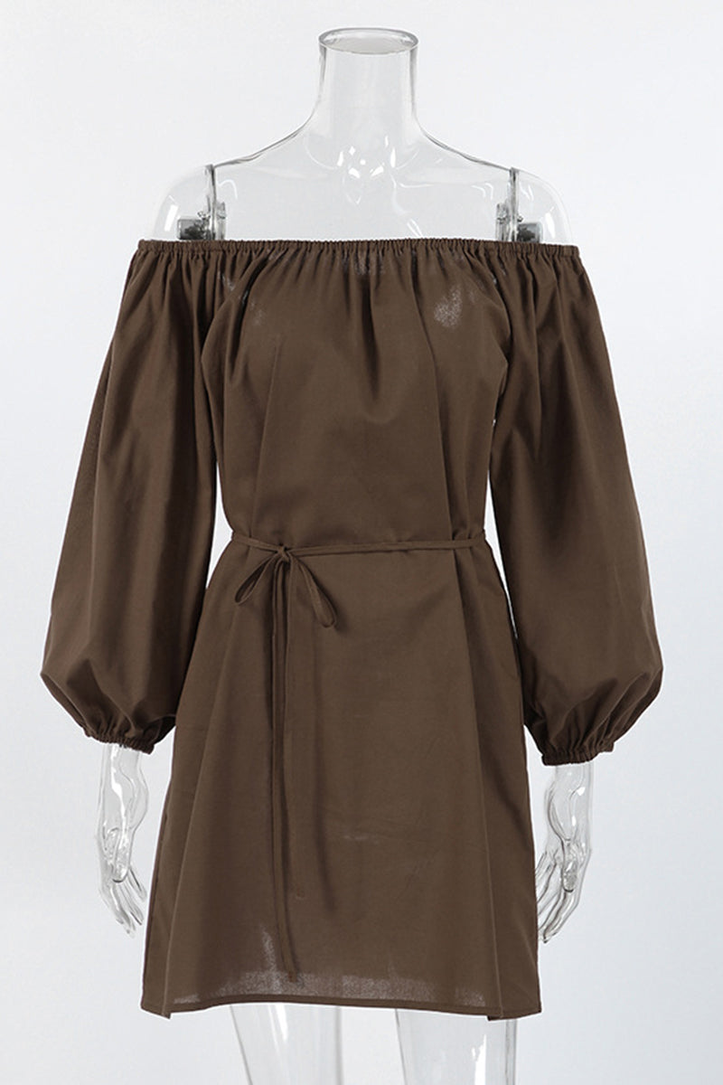 Your new favorite casual dress boasts elegant off-shoulder styling and distinct balloon sleeves. Perfect for relaxed outings and casual gatherings, offering effortless style and comfort.
