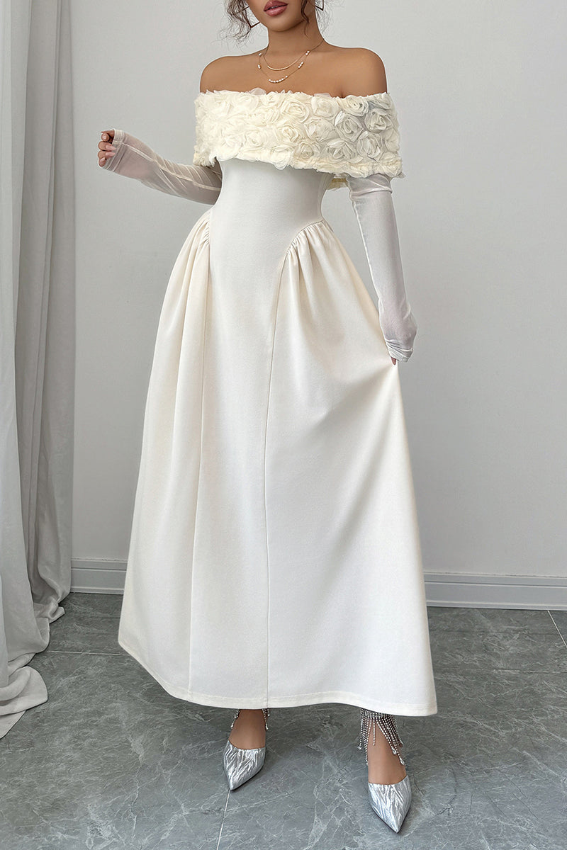 Your new elegant dress features an off-shoulder design and graceful long sleeves. Perfectly suits casual gatherings or special occasions with ease.