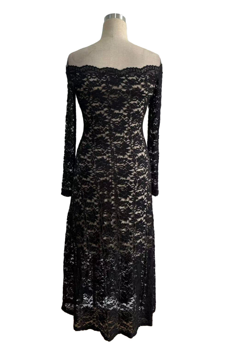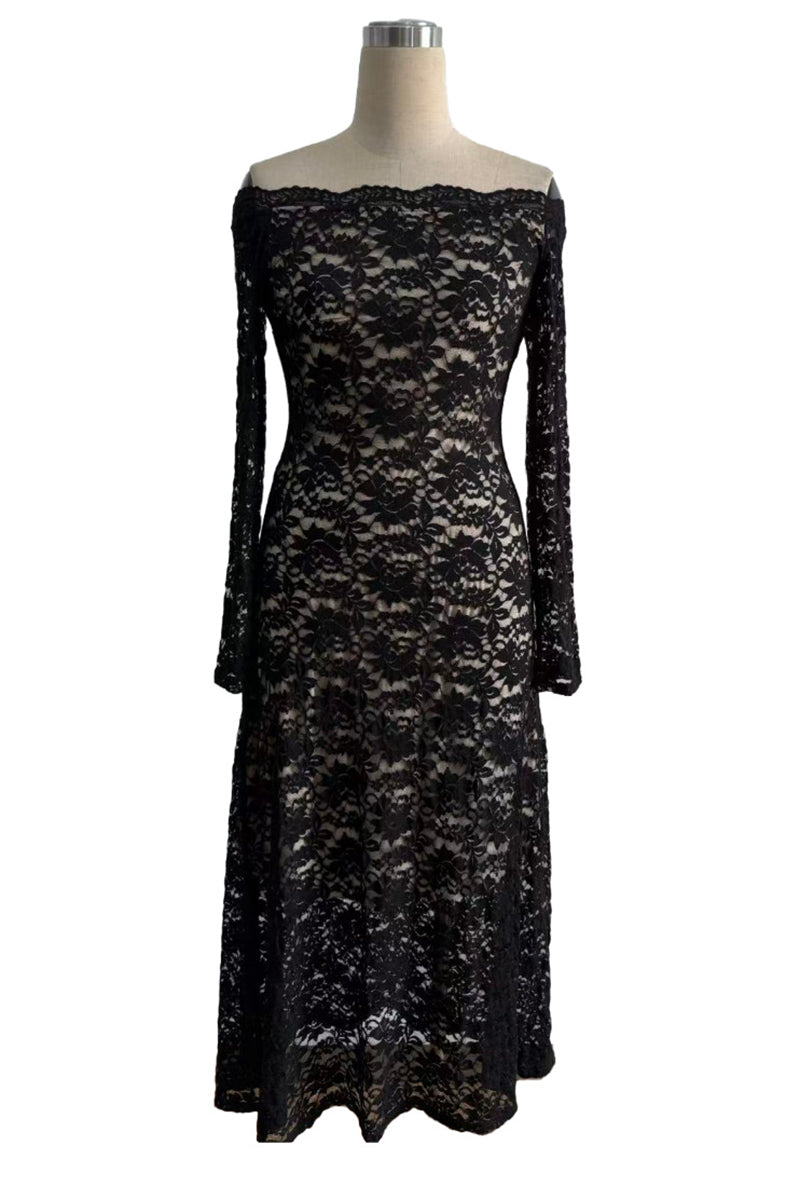Your new elegant dress, featuring an off-shoulder design and intricate lace detailing. Perfectly combines sophistication and comfort for various casual occasions.