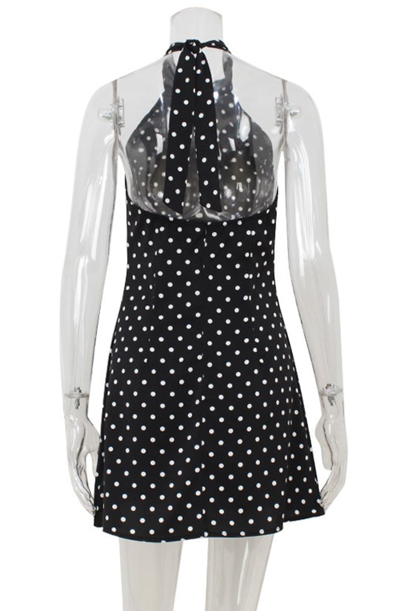 Your new go-to dress features a chic halter neckline and playful polka dot pattern. Perfect for day outings or casual evenings, enhancing your style effortlessly at any occasion.