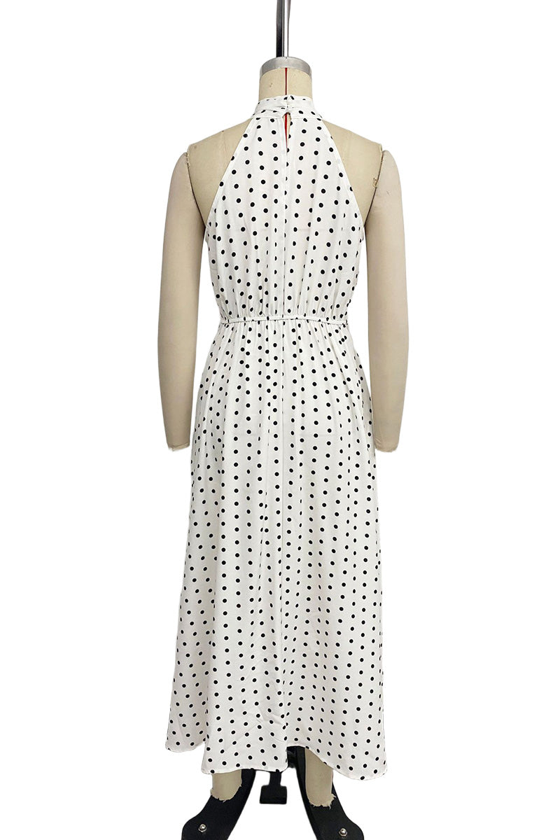 Your new go-to dress features a playful polka dot pattern and chic halter neck design. Effortlessly transitions from day to night, making it perfect for various occasions.