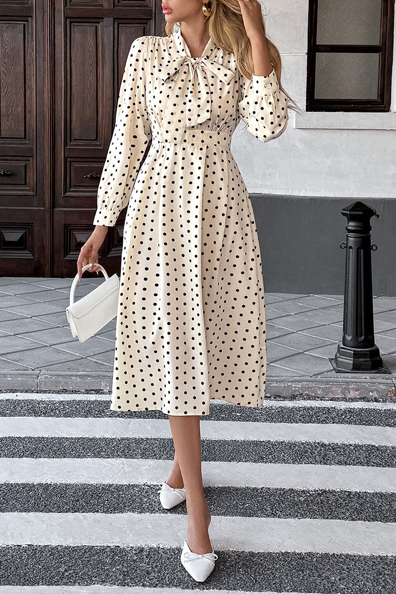 • Polka Dot Tie-Front Casual Dress