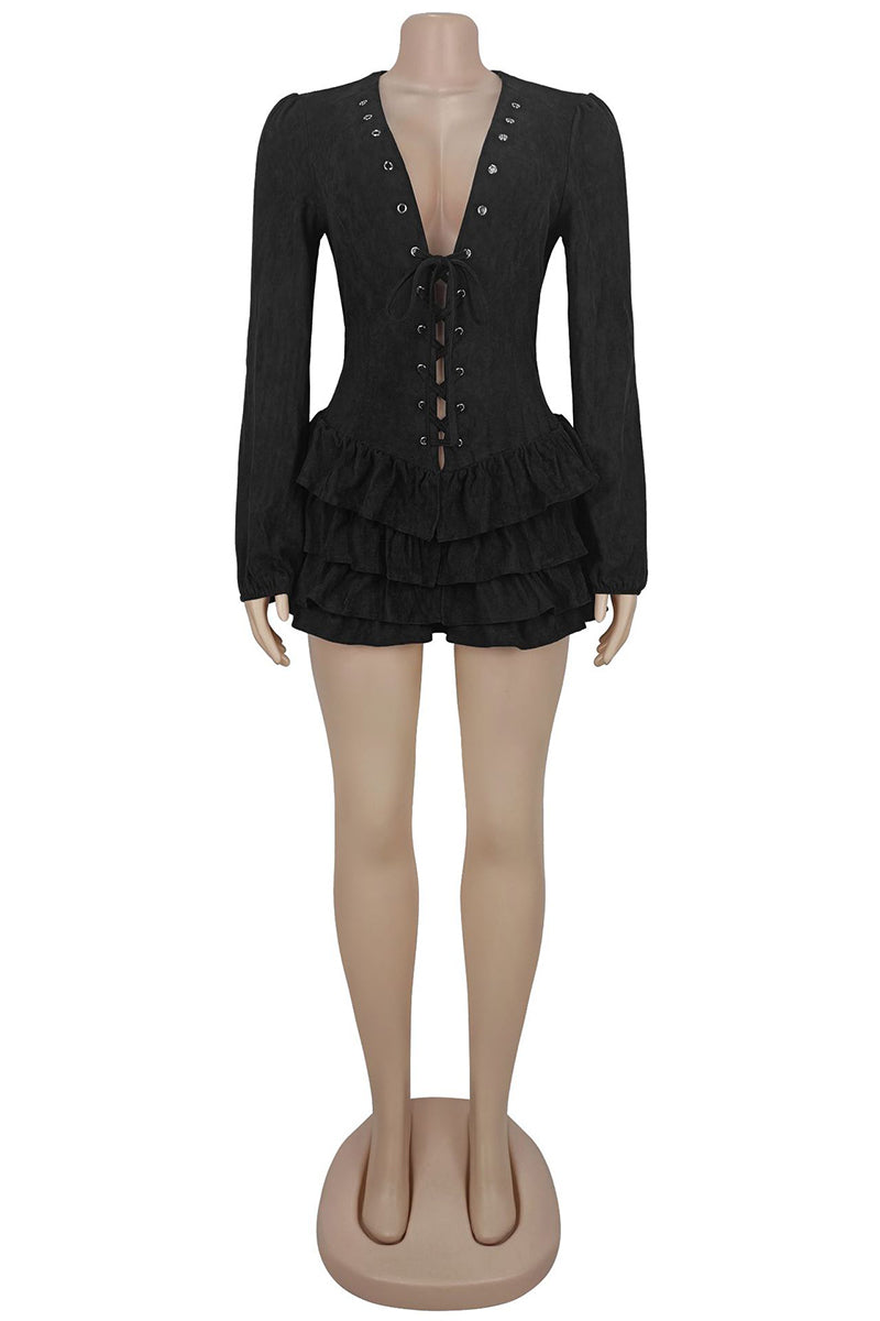 Ruffle Tiered Lace-Up Mini Dress