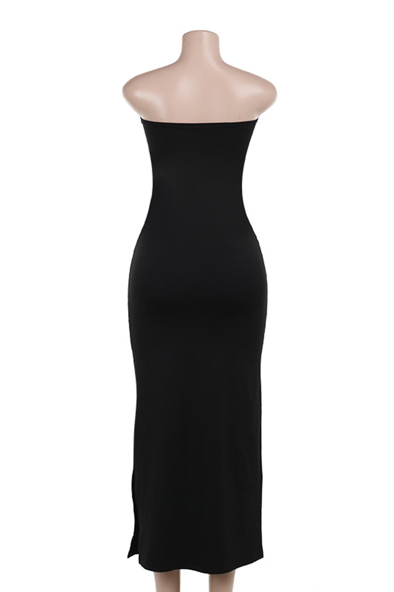 • Strapless Beaded Midi Dress