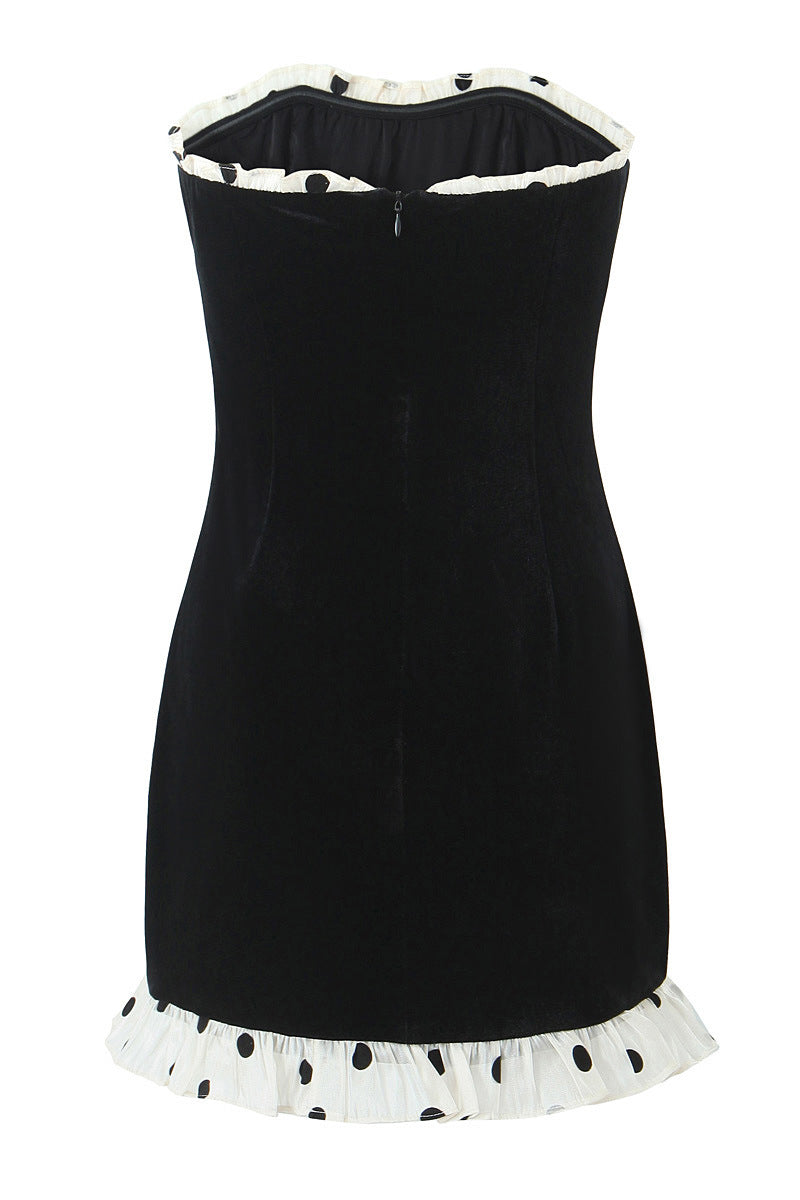 Your new go-to dress features a strapless design with playful polka dot accents. Effortlessly chic, it transitions seamlessly for any casual occasion.