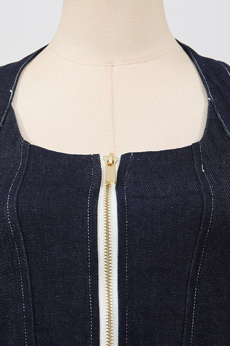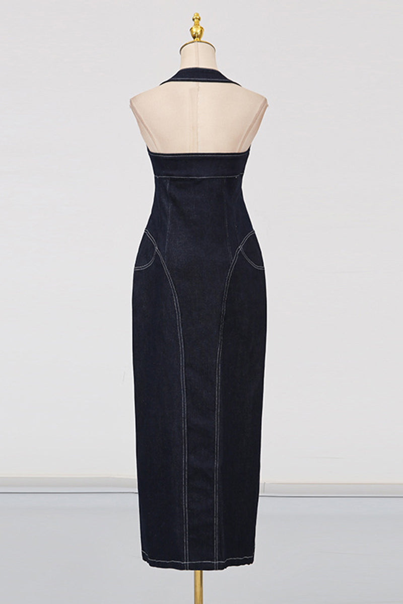 Your new standout piece features a sleek zip-front and chic halter neckline. Effortlessly transitions from day to night, perfect for any event.