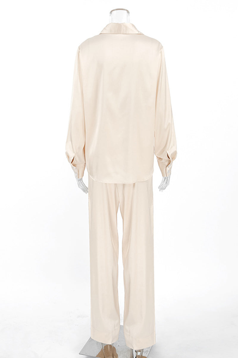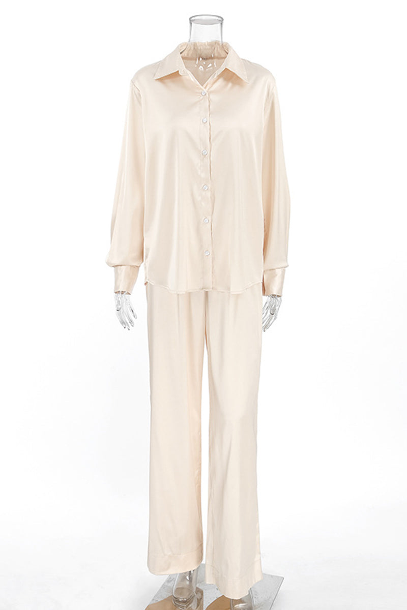 Your new ensemble features a stylish button-front top and matching pants. Ideal for both casual and formal settings, offering elegance and versatility.