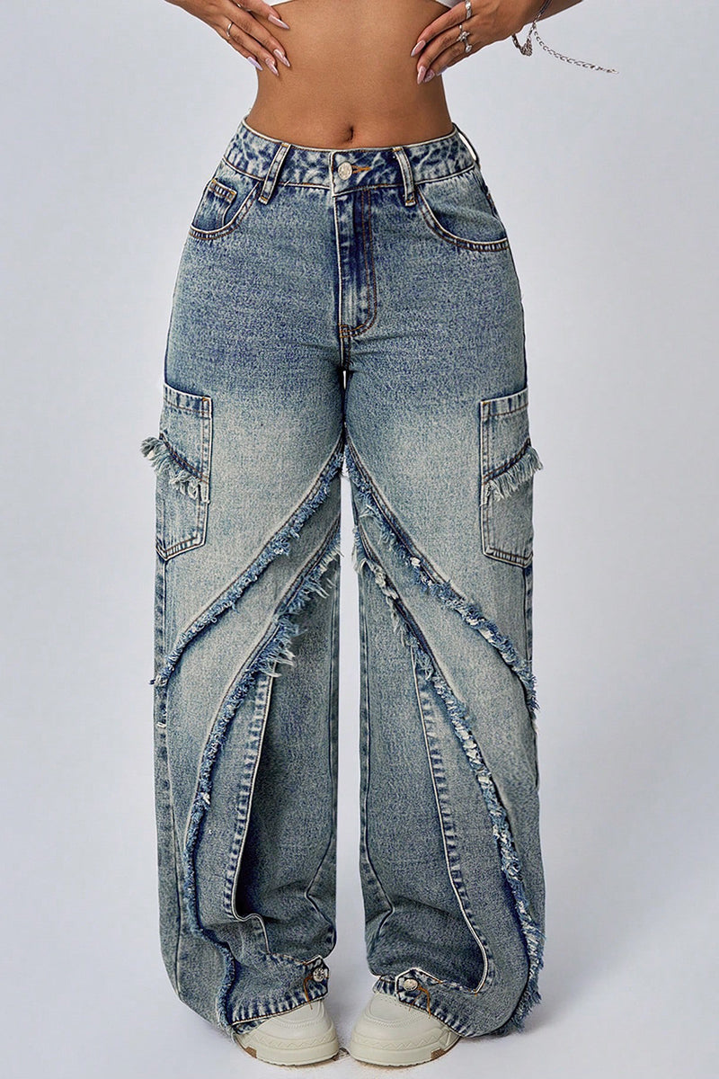 Your new favorite jeans offer a trendy distressed style with a relaxed wide-leg fit. Perfect for day-to-night wear, these jeans effortlessly elevate any outfit occasion.