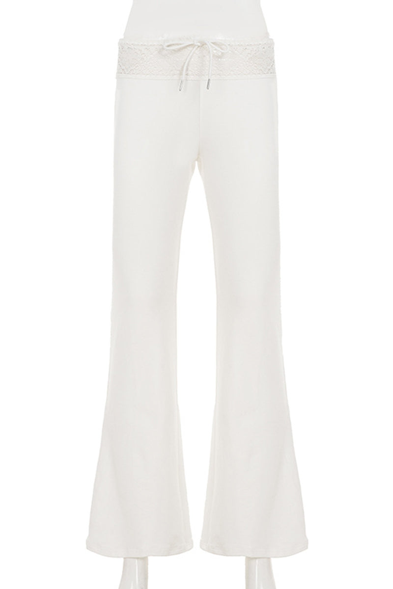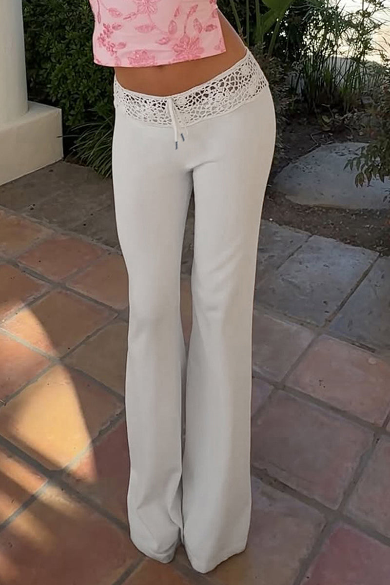 Your new wardrobe staple features a delicate lace detail and flared leg design. Perfect for relaxed days out, offering comfort and style effortlessly.