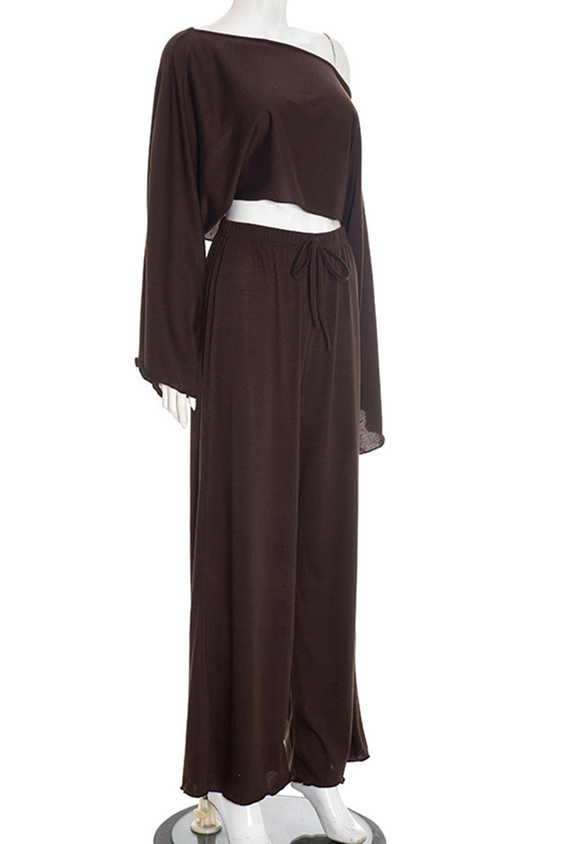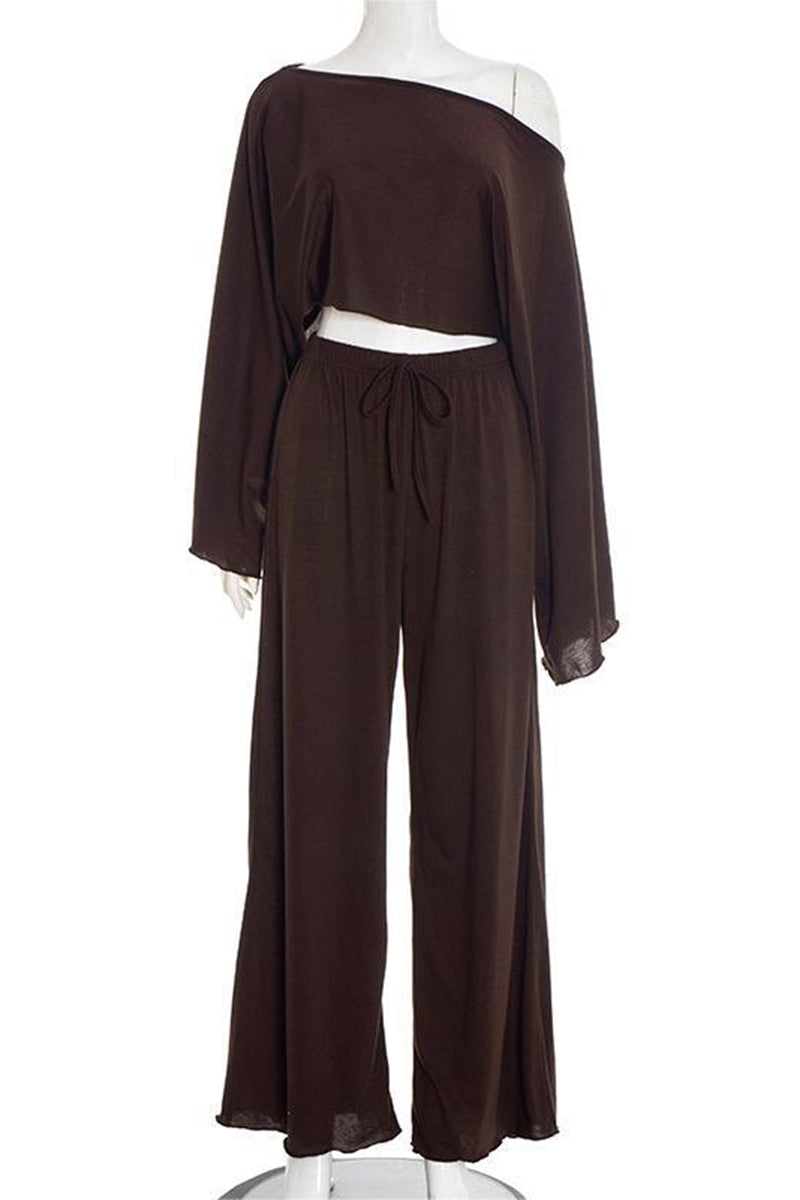 - Off-Shoulder Top and Wide-Leg Pants Set