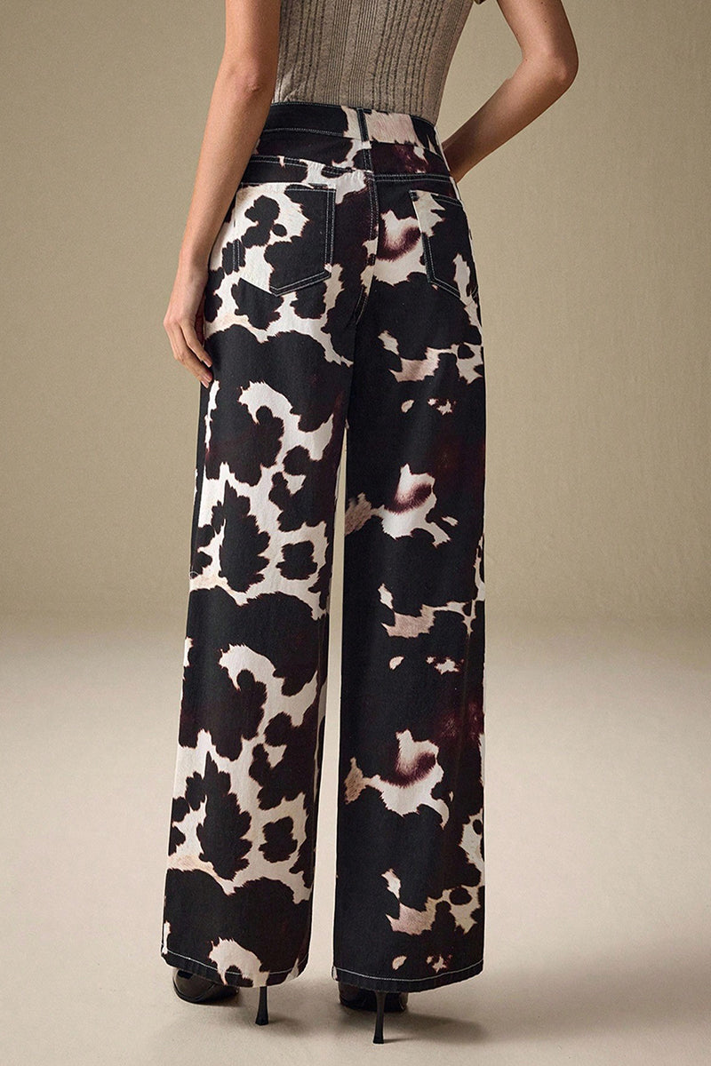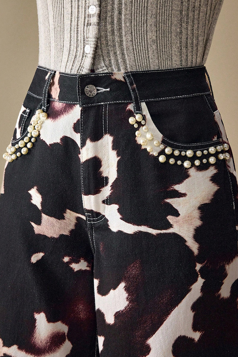 Your new statement jeans feature a bold print and straight-leg fit. Effortlessly versatile, they elevate your style for any occasion.