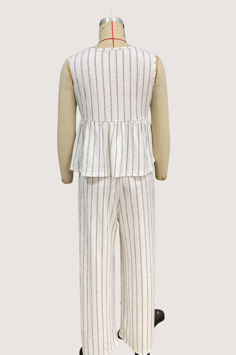 - Sleeveless Striped Peplum Pants Set