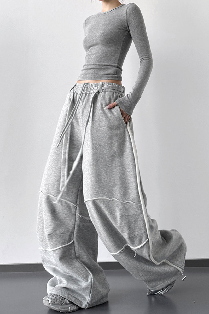 - Wide-Leg Drawstring Casual Pants