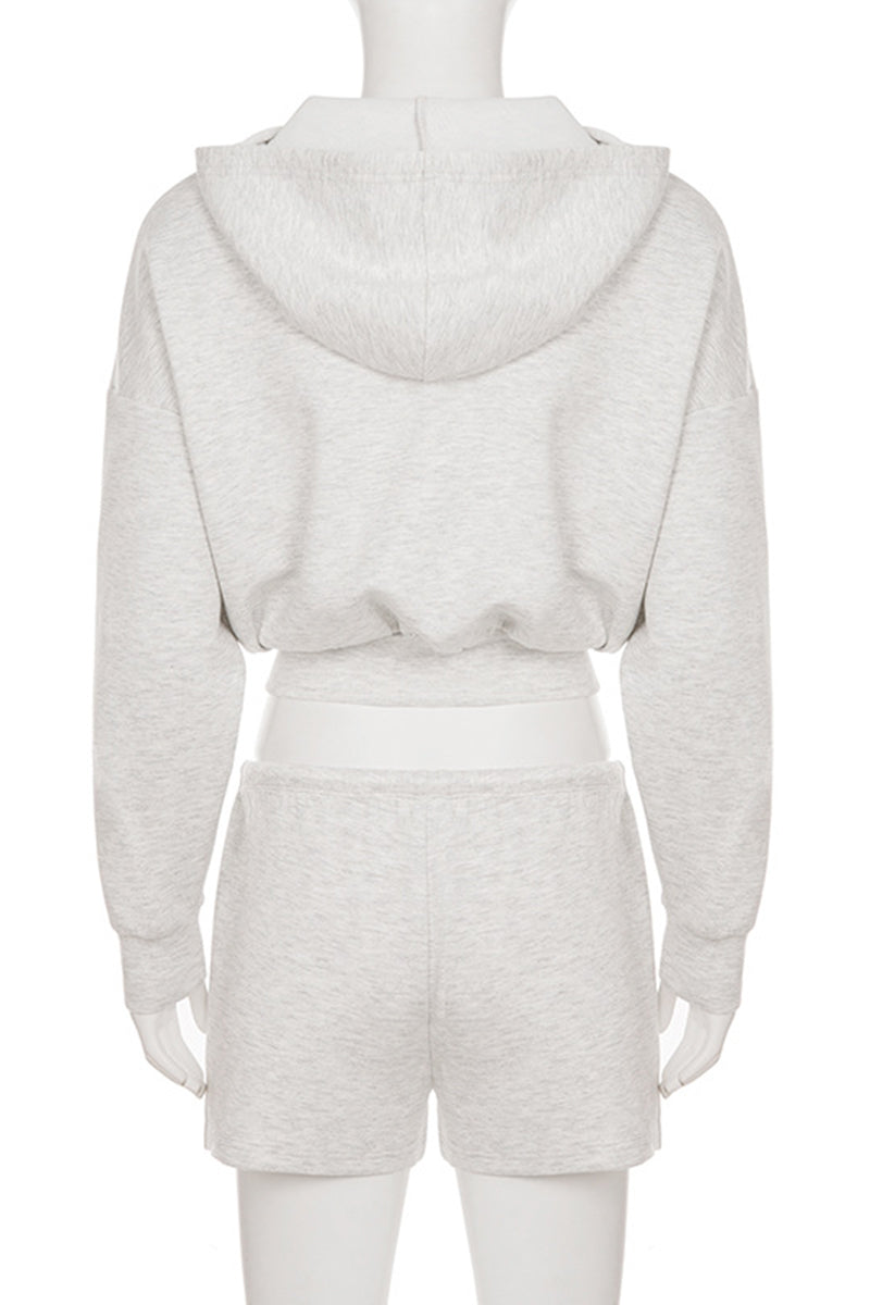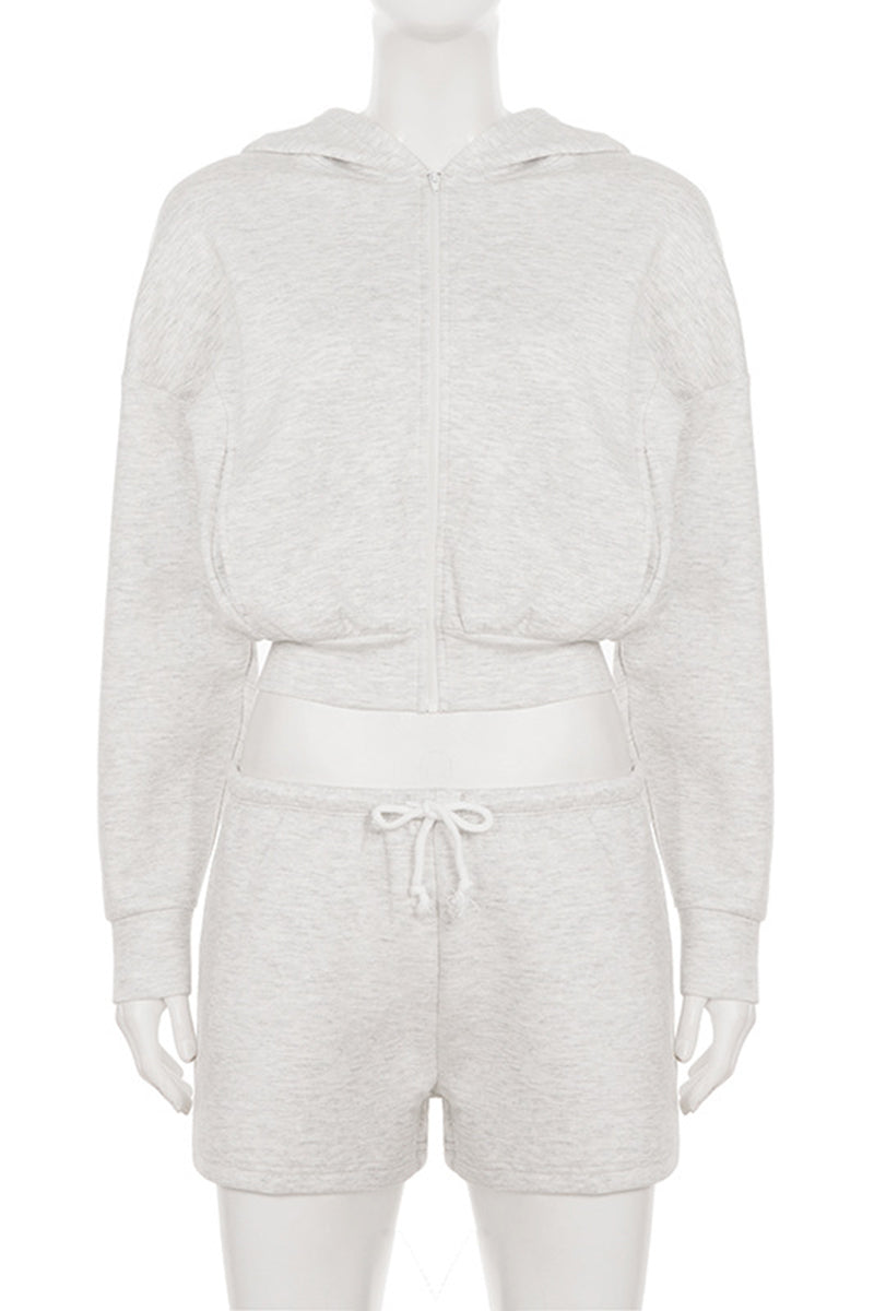Casual Zip-Up Short Set with Hood