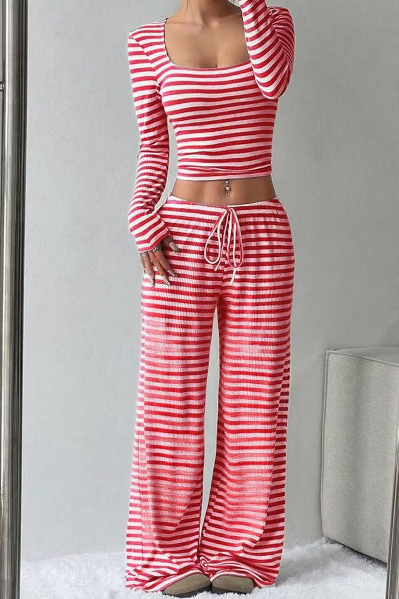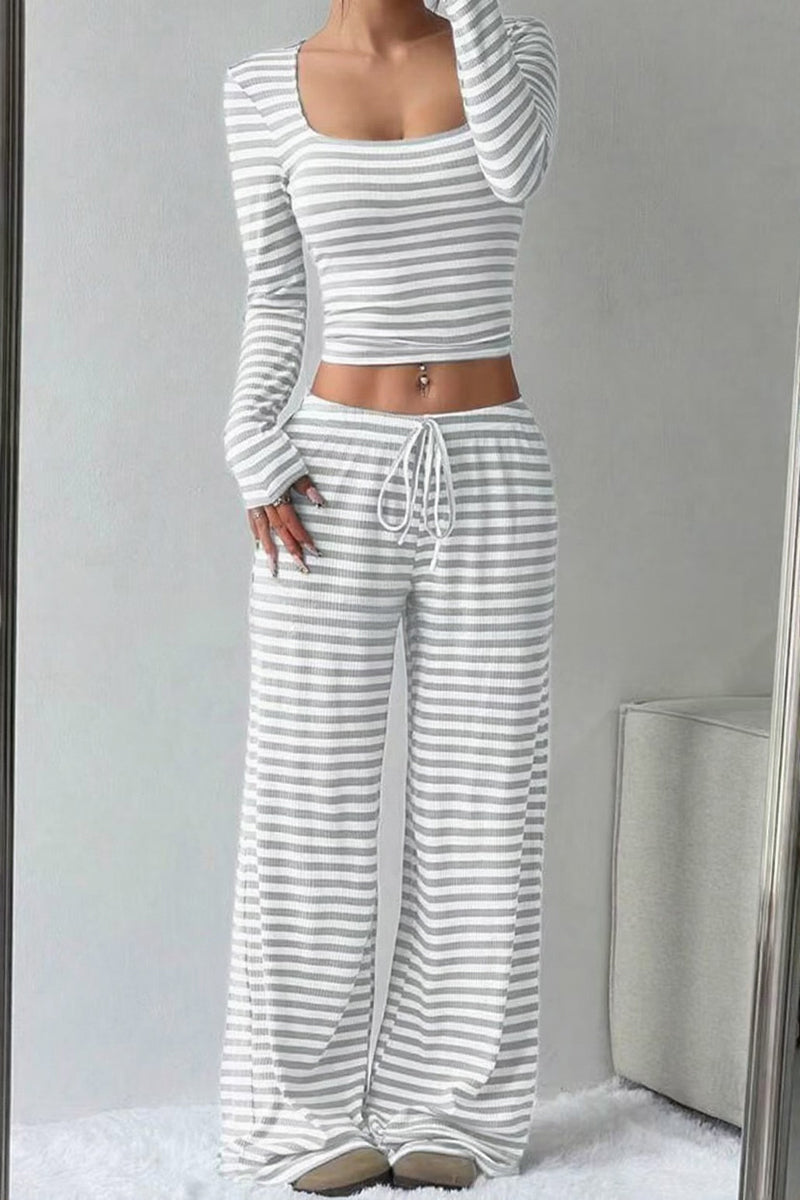 Your new favorite set features a stylish striped design with a casual drawstring waist. Perfect for lounging or outings, it offers a relaxed fit that keeps you comfortable all day.