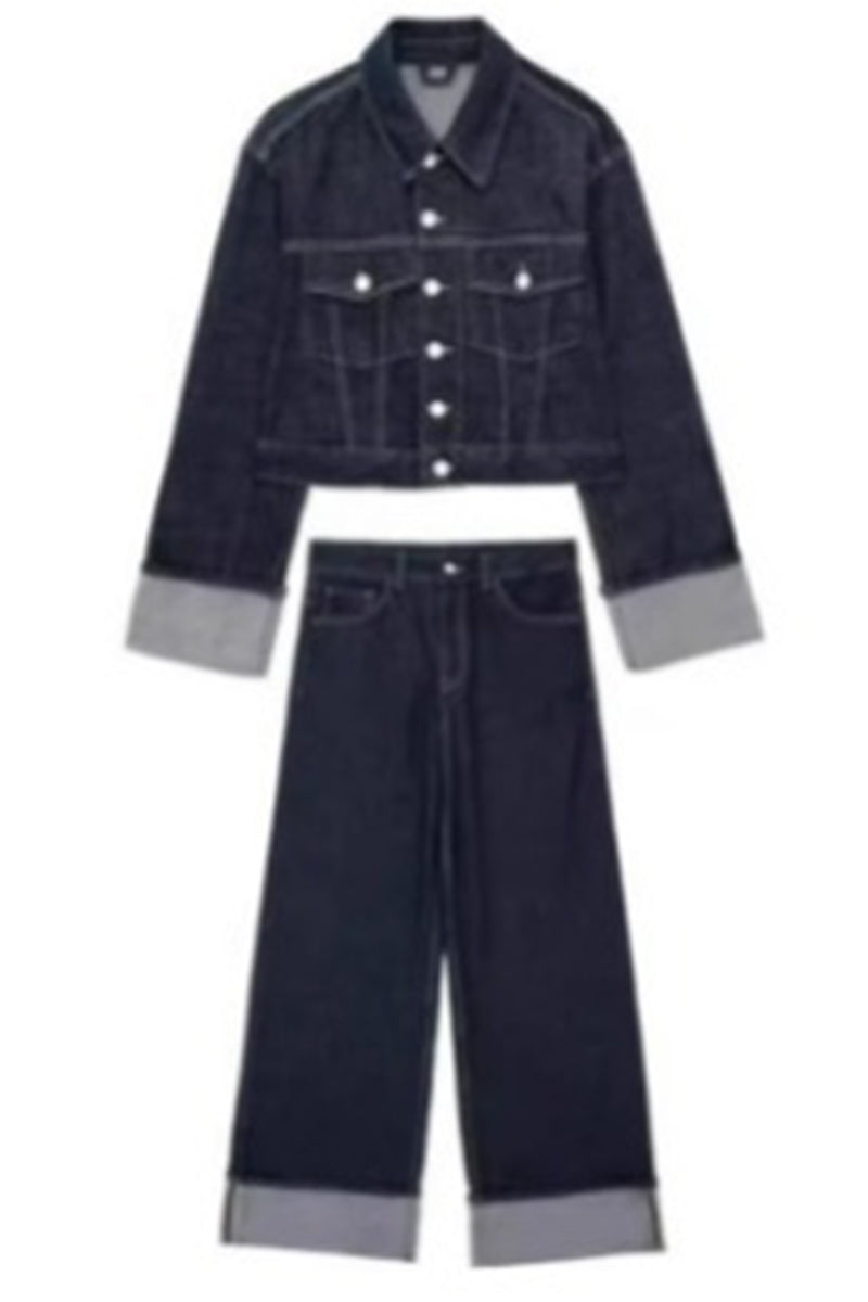 Your new essential set features a button-front jacket with sleek design details. Effortlessly complements any outfit for day-to-night versatility.