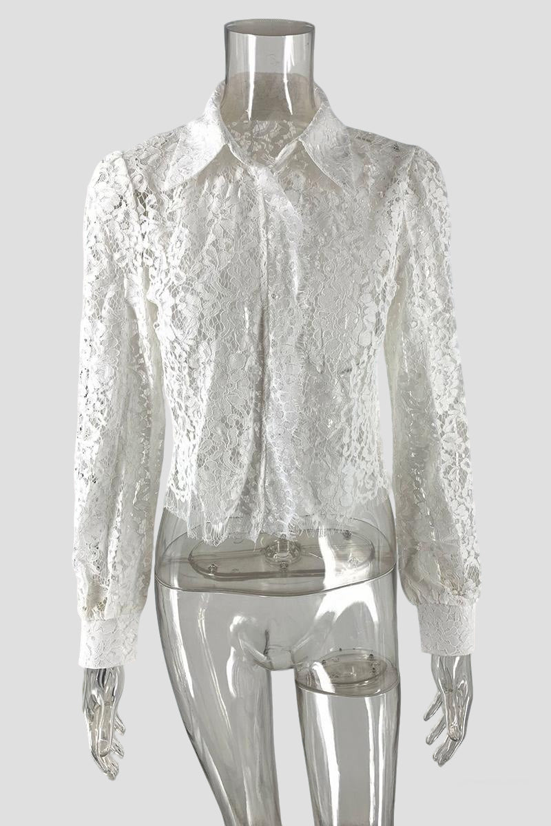 Elegant Lace Button-Up Blouse