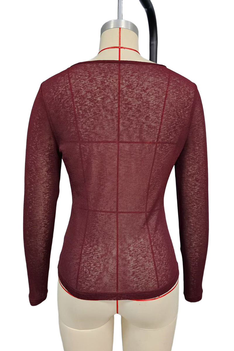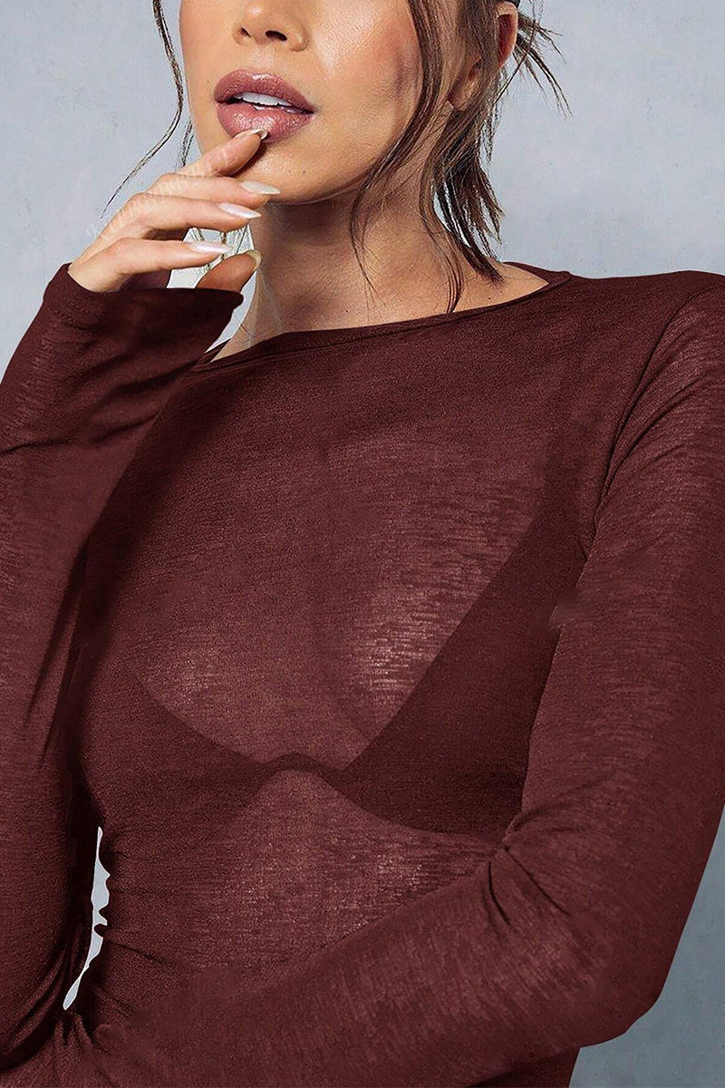Your new go-to top features a chic sheer design and stylish long sleeves. Effortlessly enhances any outfit, perfect for various occasions.