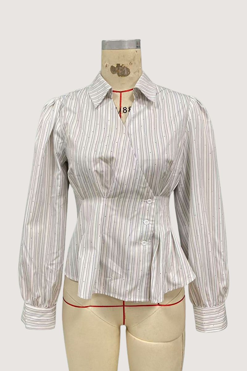 Your new staple blouse features a chic wrap design and tailored fit. Perfect for both professional and casual settings, enhancing any outfit with ease.