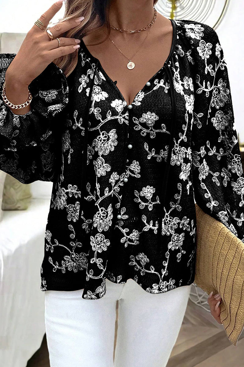 Your new favorite blouse showcases a sophisticated floral prints design. Perfect for elevating your casual looks or accentuating evening styles.