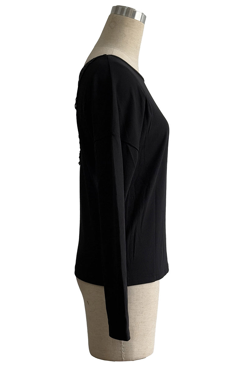 Your new stylish t-shirt showcases a captivating lace butterfly back design. Perfect for adding an elegant touch to casual or evening outfits.
