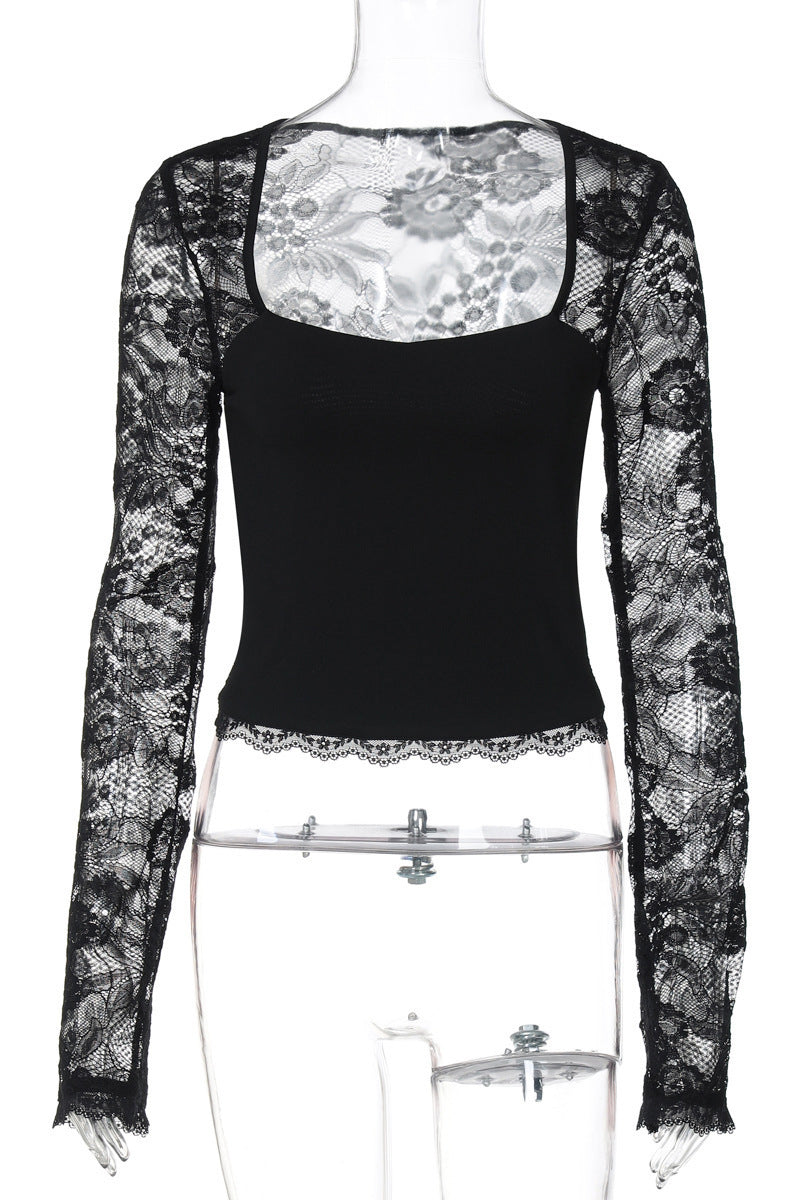 Your new essential blouse showcases delicate lace sleeves and a figure-hugging fit. Perfect for day-to-night transitions, marrying elegance with comfort.