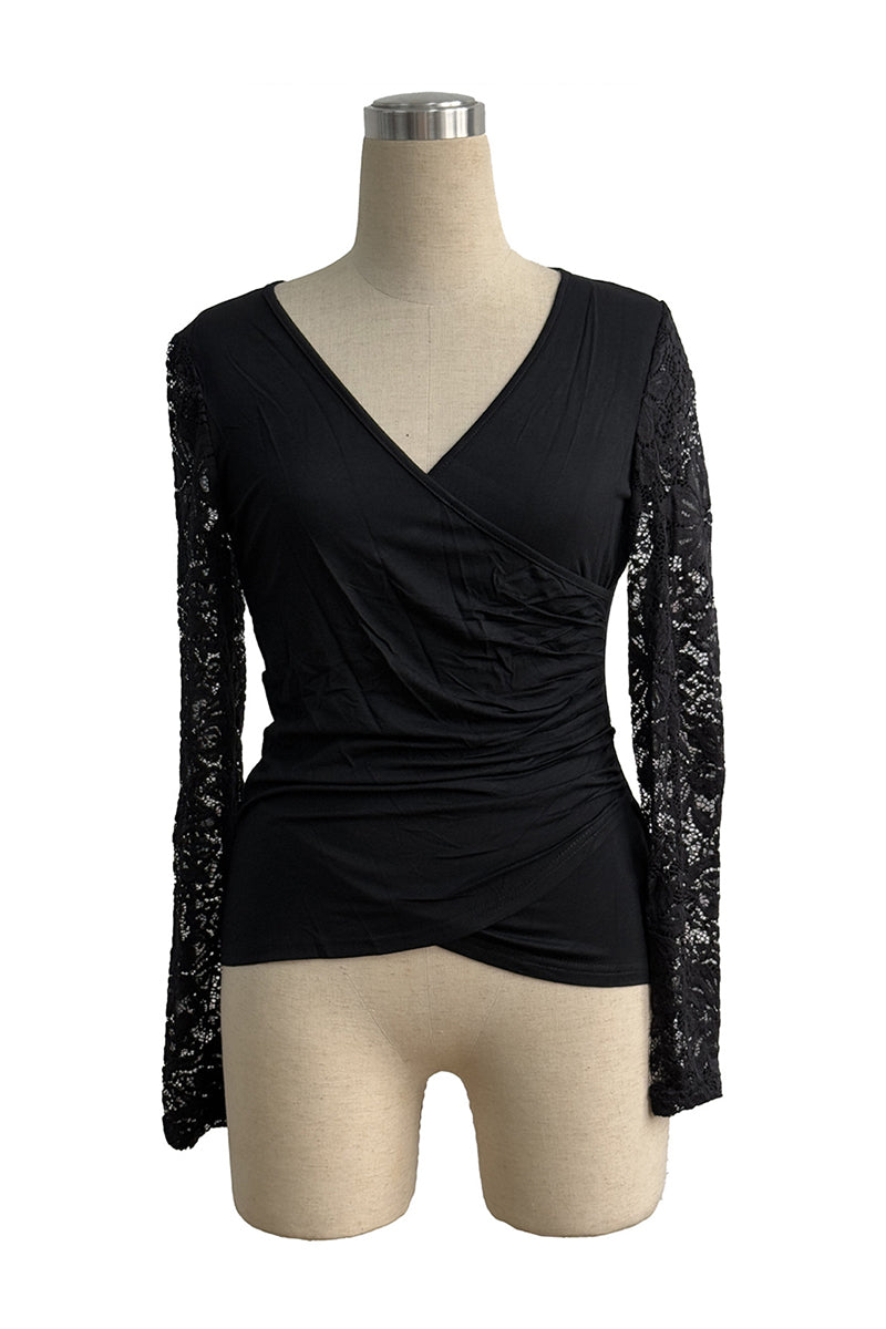 Your new go-to top features a stunning plunge neckline and elegant lace sleeves. Effortlessly enhances your wardrobe, making it ideal for various occasions.