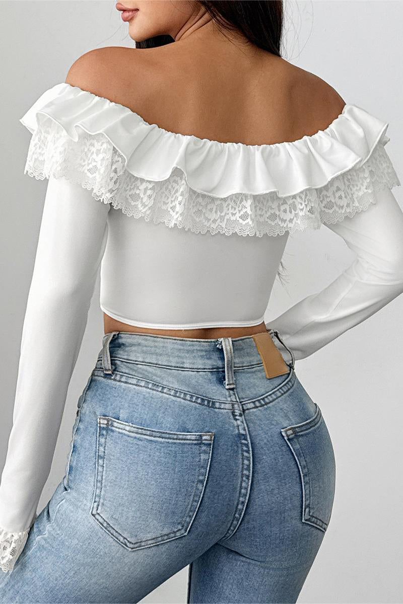 - Off-Shoulder Lace Trim Blouse