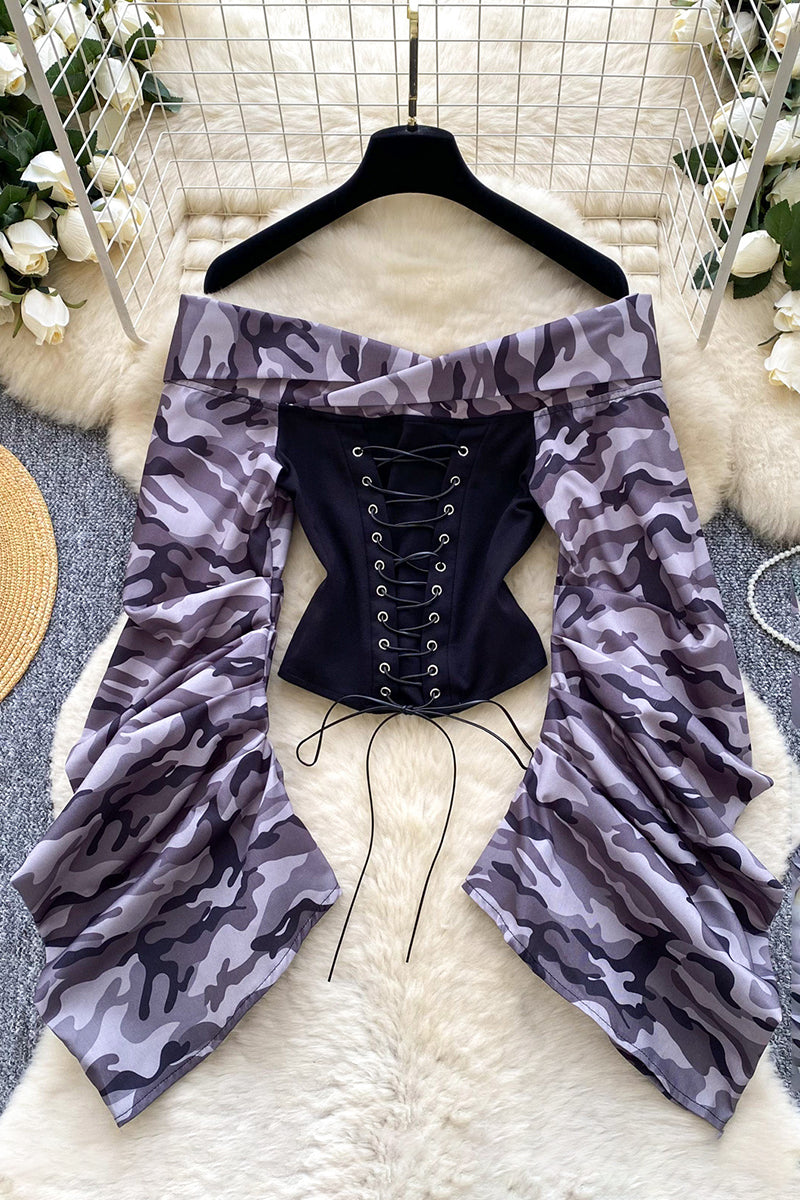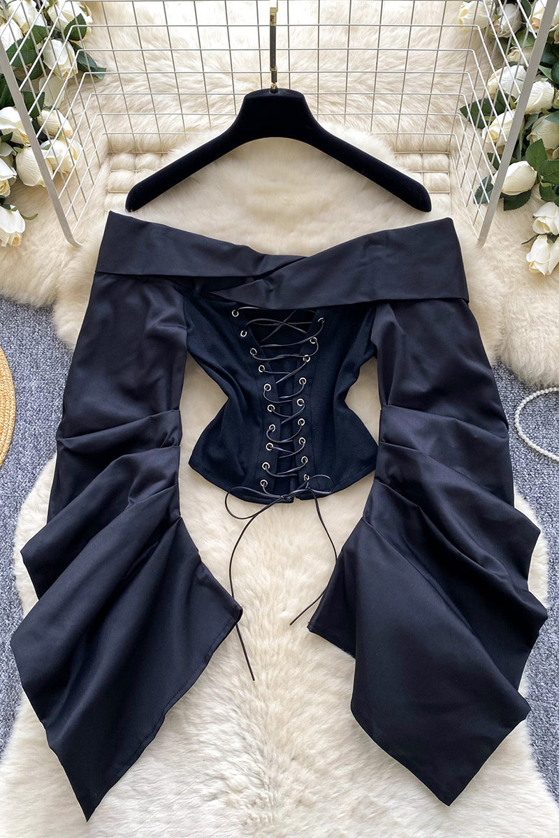 - Off-Shoulder Lace-Up Blouse