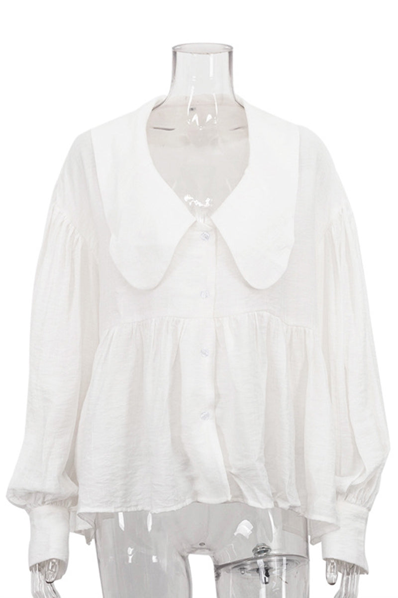 Oversized Collar Button-Up Blouse