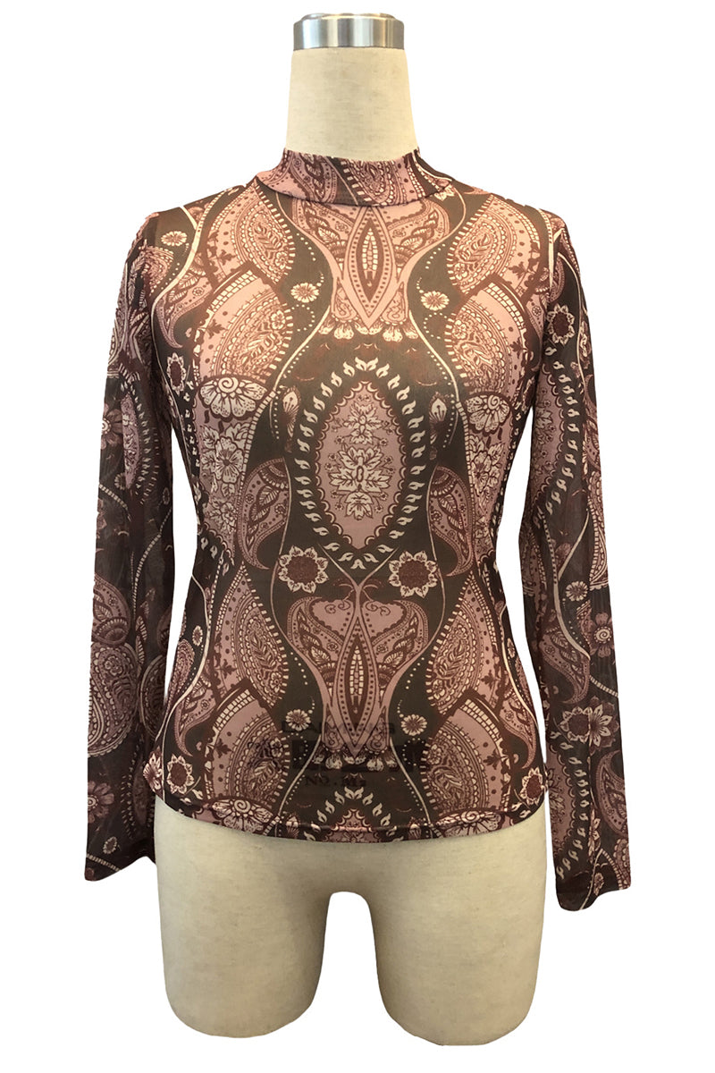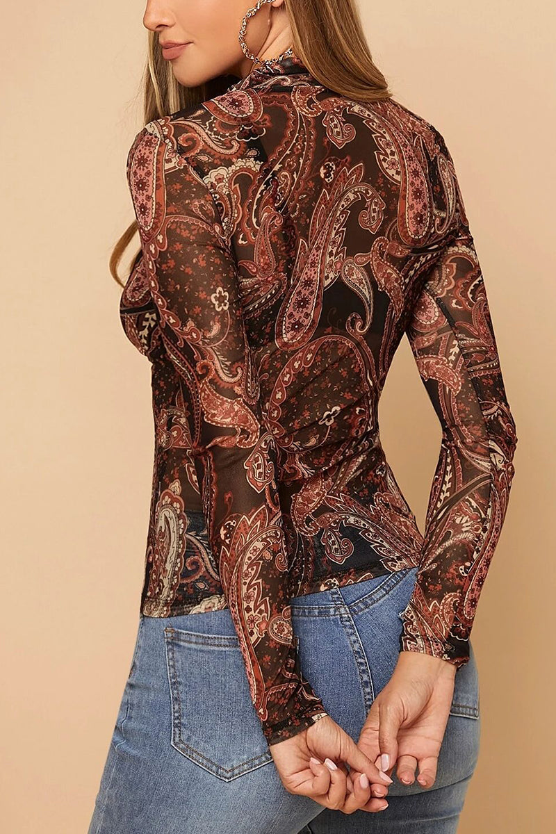 Your new stylish essential features a mock neck with an eye-catching paisley design. Perfectly versatile for casual outings or chic events.