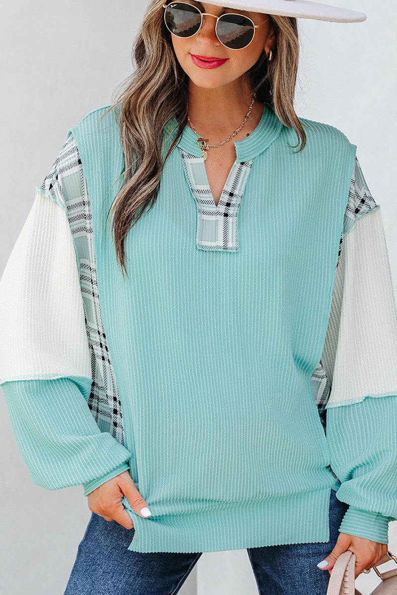 Your new go-to sweatshirt features a unique plaid accent and casual knit design. Perfectly versatile for dressing up or down, ideal for any casual outing.