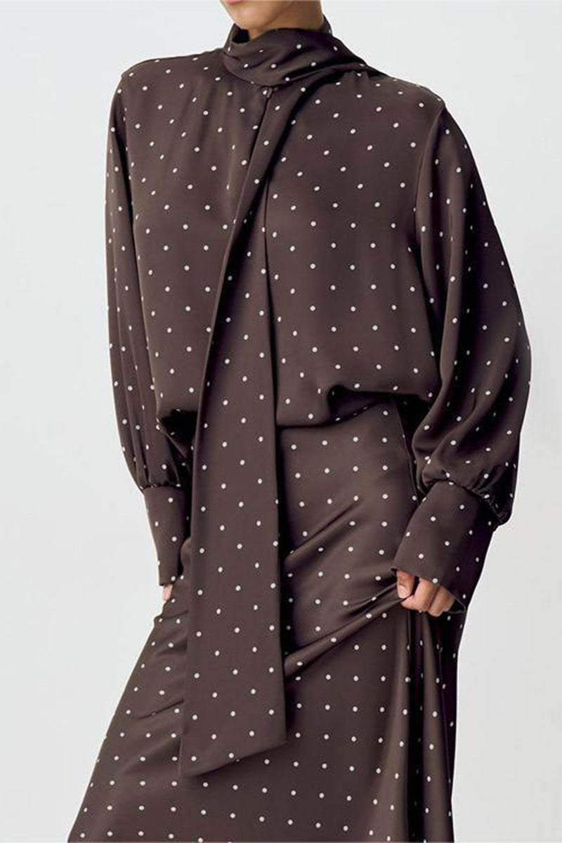 • Polka Dot High-Neck Blouse with Tie