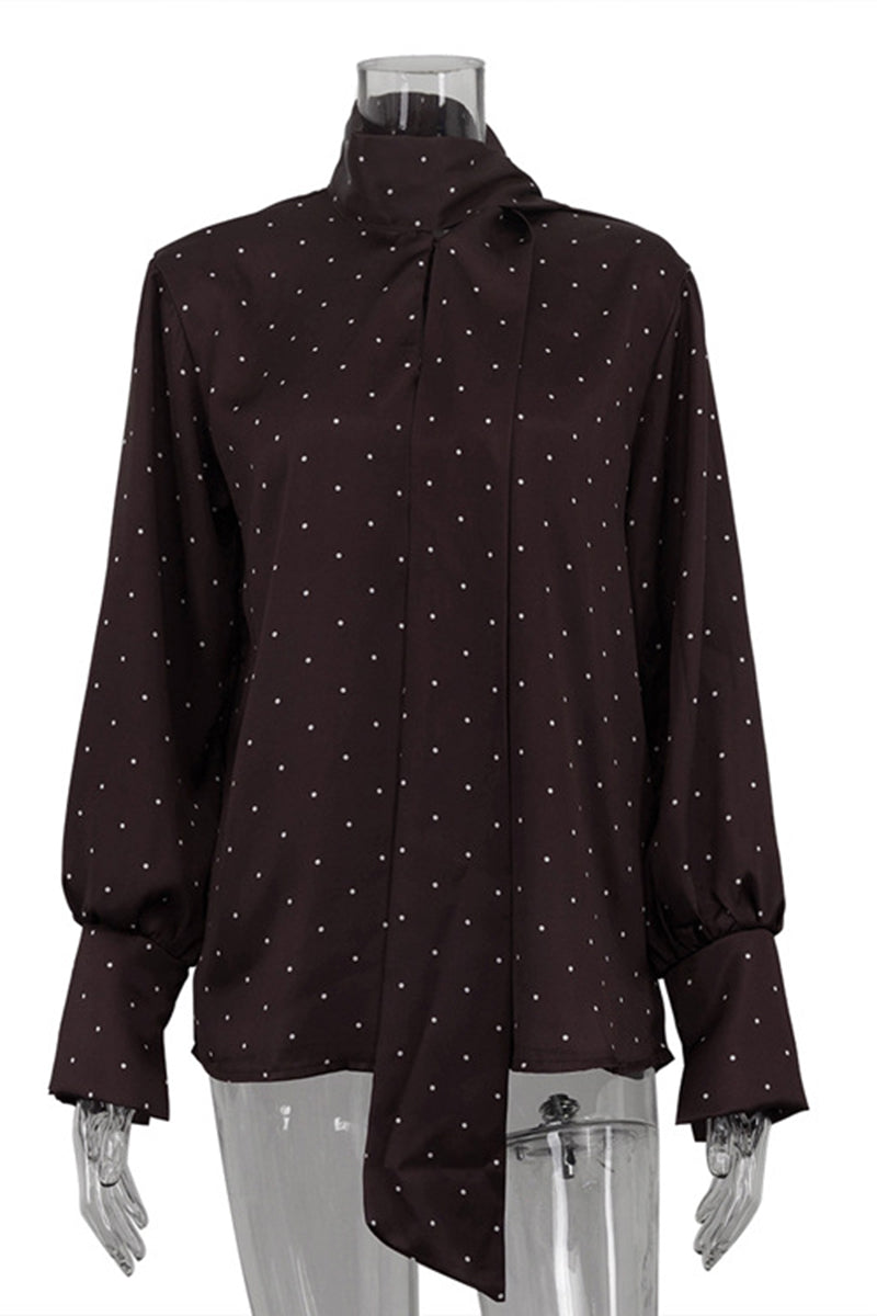 Polka Dot High-Neck Blouse with Tie